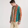 - Détaile de frise imprimé “Spirale” sur l’empiècement dos, poche poitrine, en opposition intérieure au pied de col, patte de boutonnage et à
