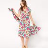 - A flowing dress that combines comfort and elegance. Its crossover neckline and kimono sleeves give it a feminine touch, while its side pockets add a practical, modern edge – a must-have for a trendy look. The placement of the scarf-effect print emphasizes the cut of this dress.