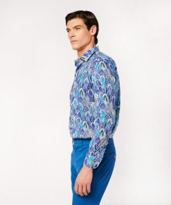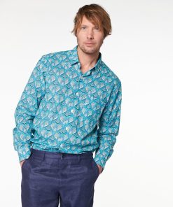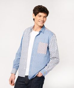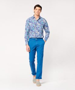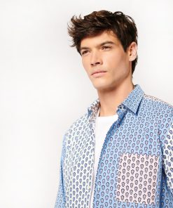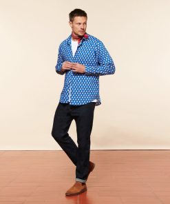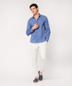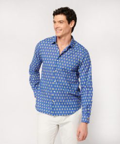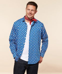 Souleiado Men’s Tricolor Ultramarine Blue Frederi “scarabée” Straight Shirt | Bleu Outremer