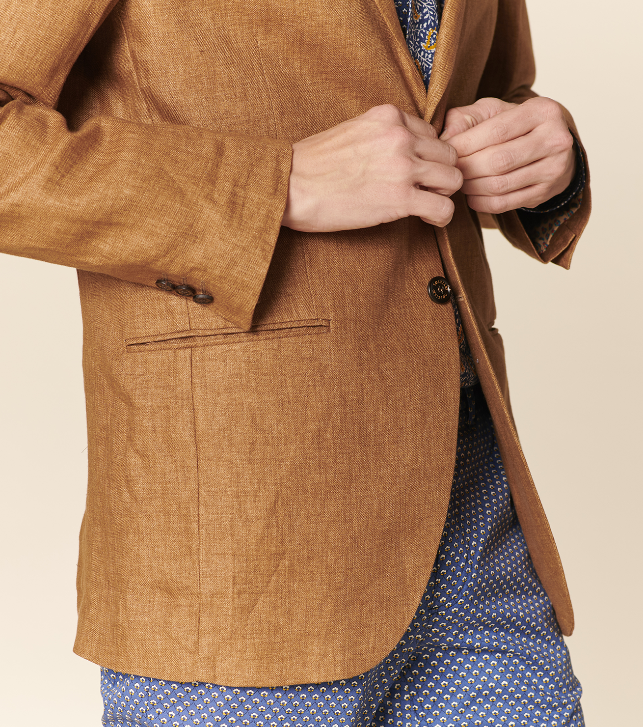 - Opposition in “Petit Cachemire” print, half-back lining, inside pockets and under collar