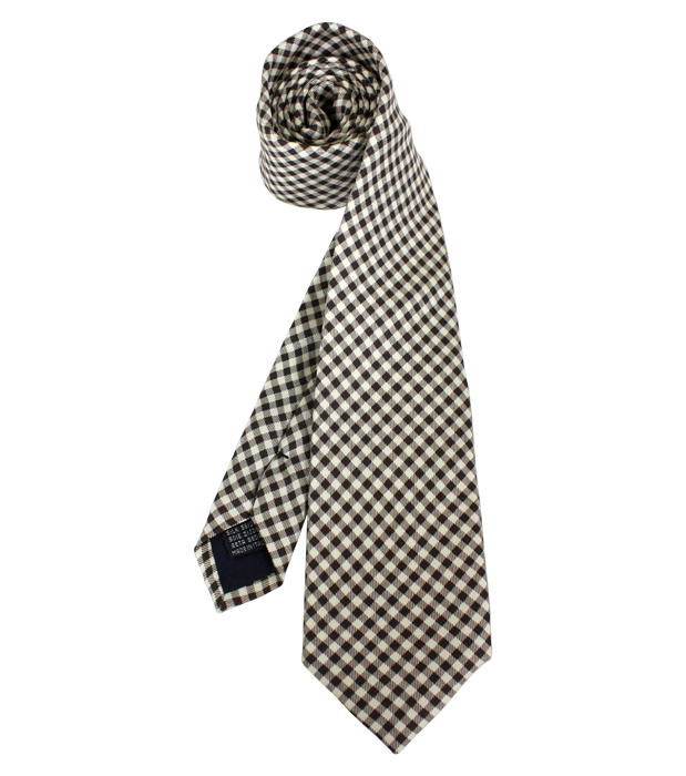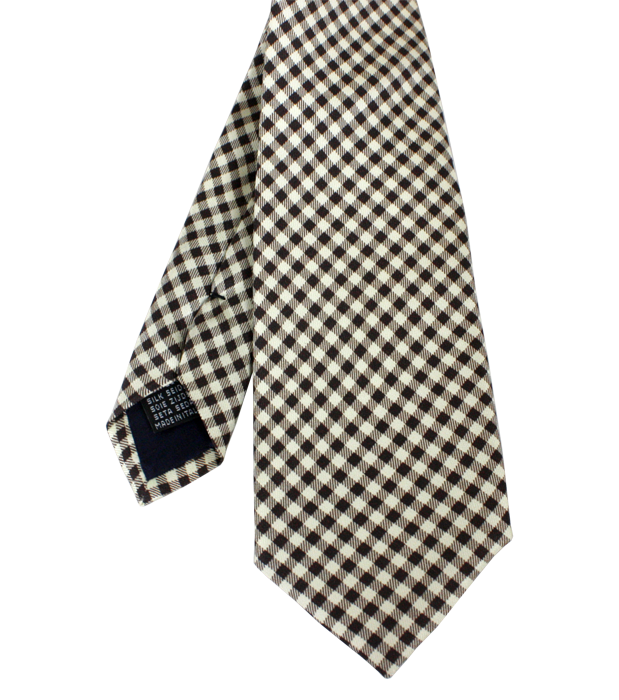 Beige and brown “Le Marquis” print check silk tie. Made in Italy. Width at base 8 cm, length 150 cm, normal thickness.
