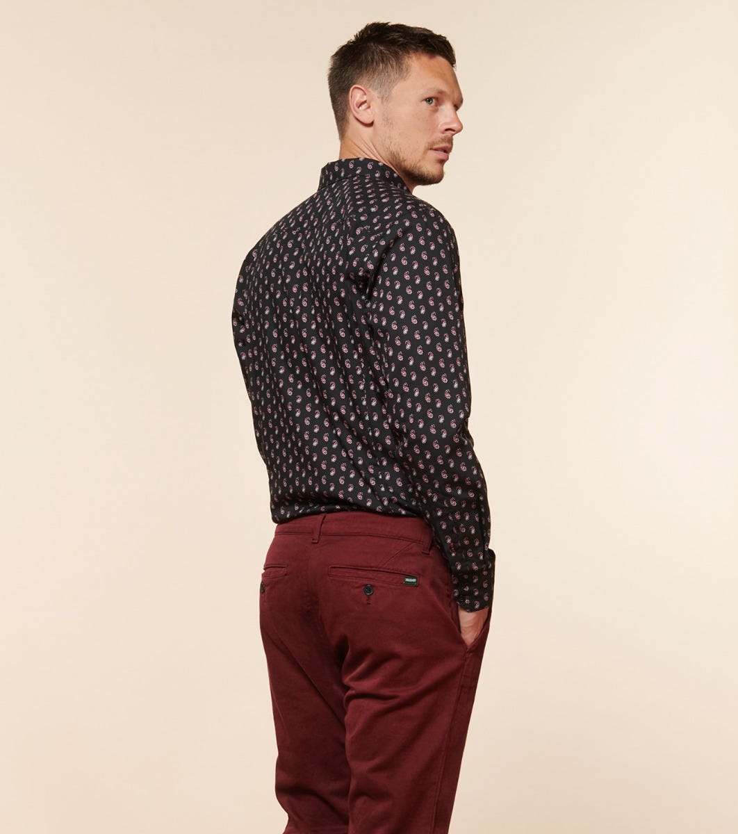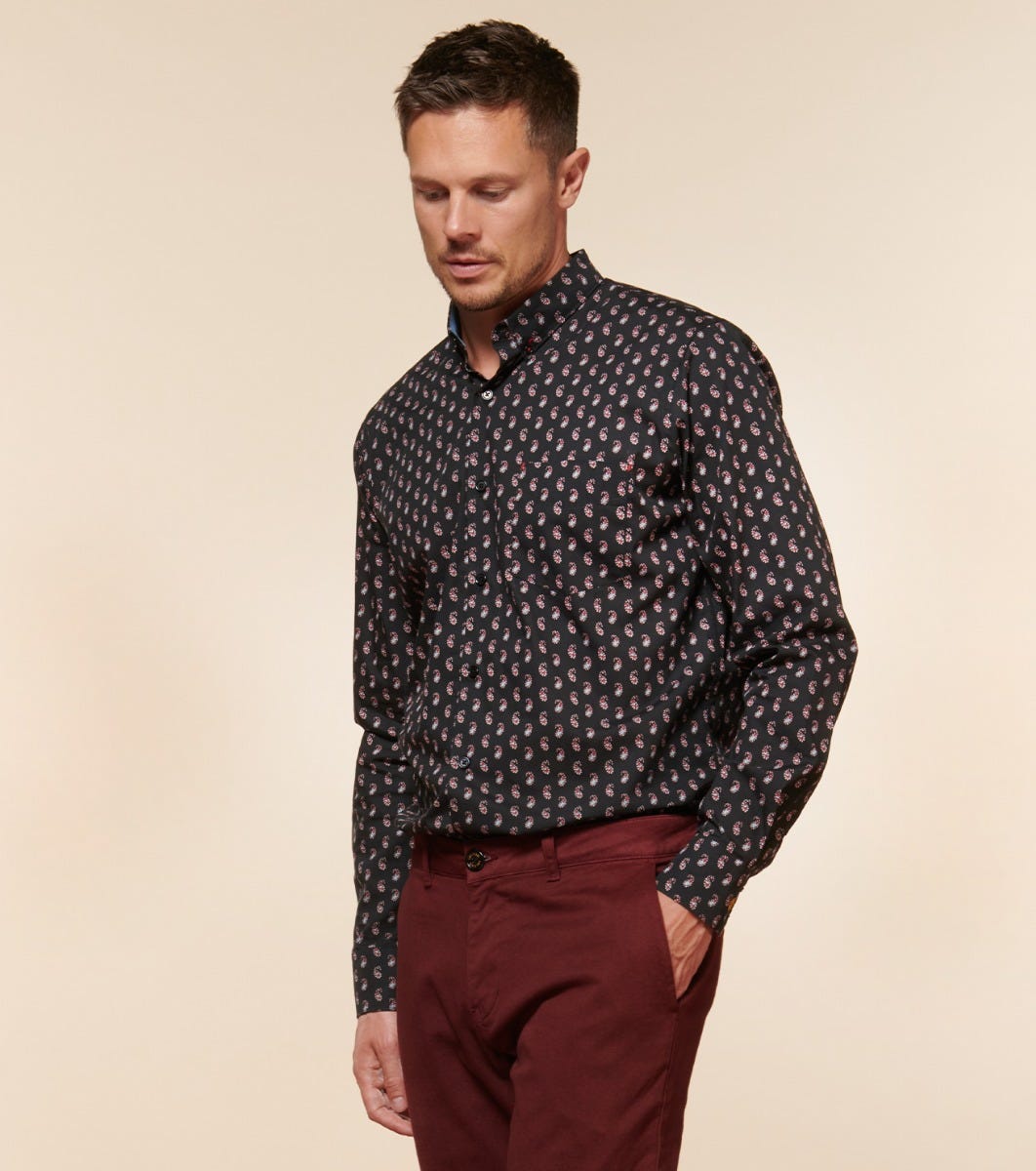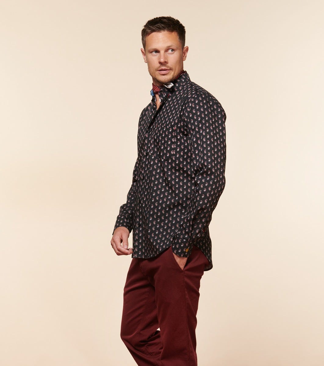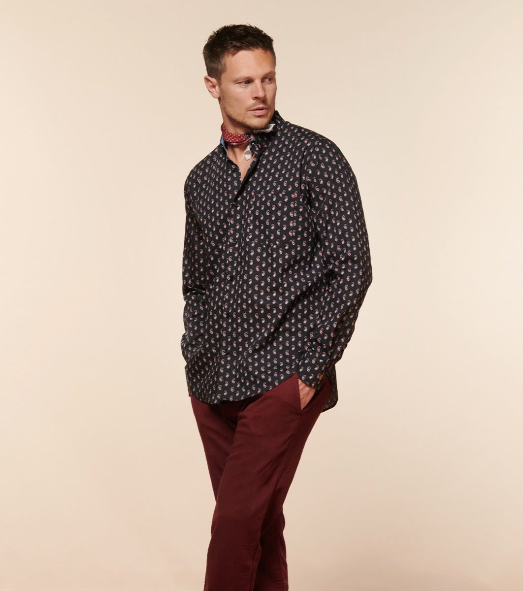 - Milo, our slim-fitting shirt with American collar and heart patch pocket. Closer to the body and slightly fitted at the waist, thanks to two back darts, for a silhouette-shaping fit. A casual-chic button-down collar: the buttons holding back the points make this collar special.