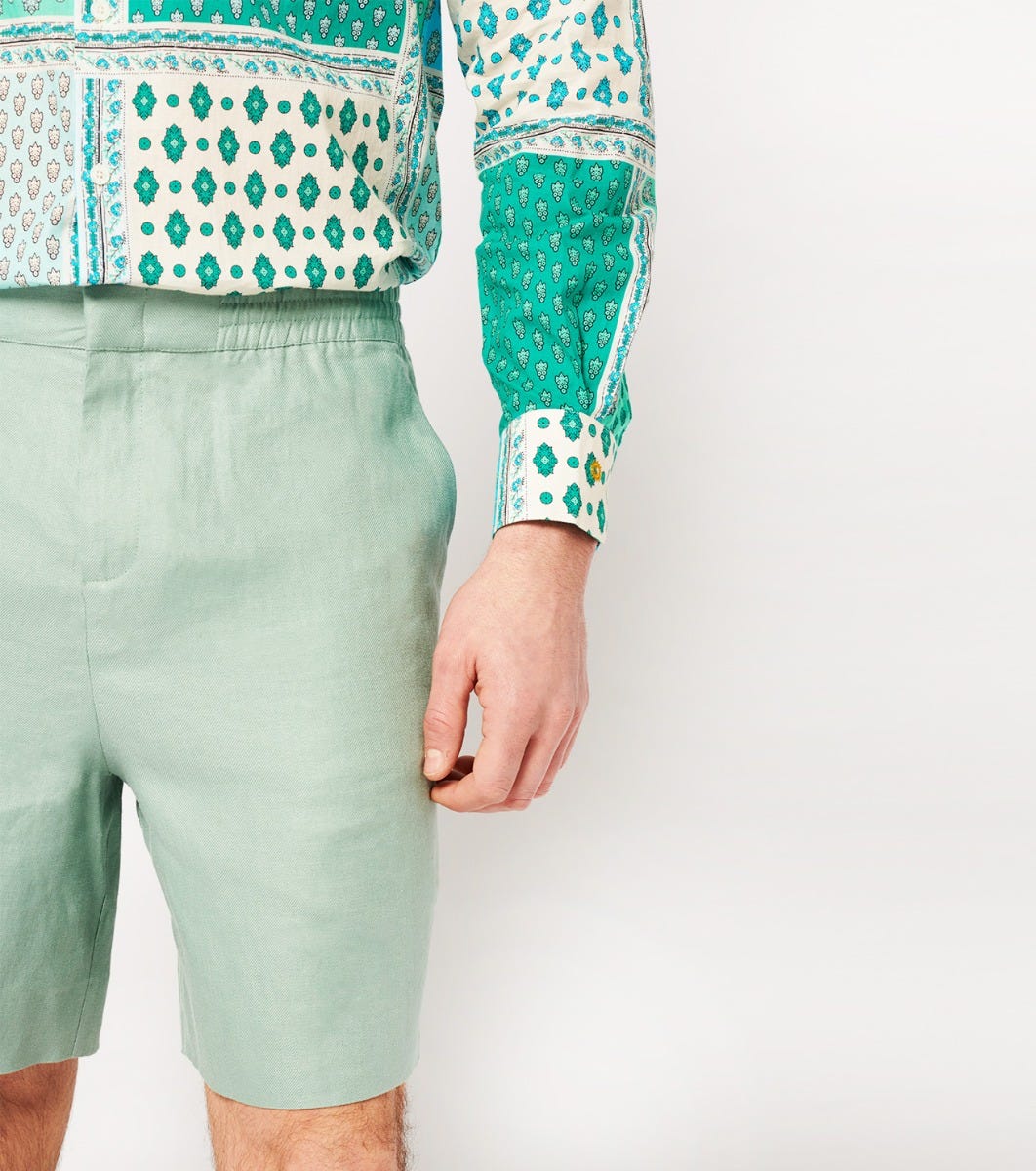 Souleiado Men’s Celadon Ourrias Linen Shorts | Céladon