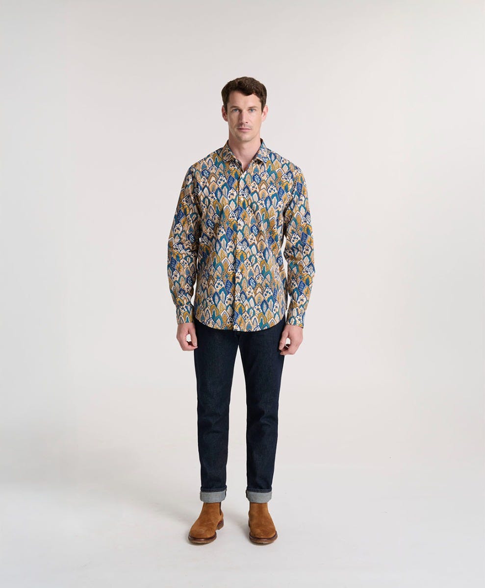- Alphonse, our shirt with a slim fit and French collar. Closer to the body and slightly tapered at the waist, thanks to two back darts, for a fit that shapes the silhouette. A short, slightly flared, reinforced collar that’s easy to wear.