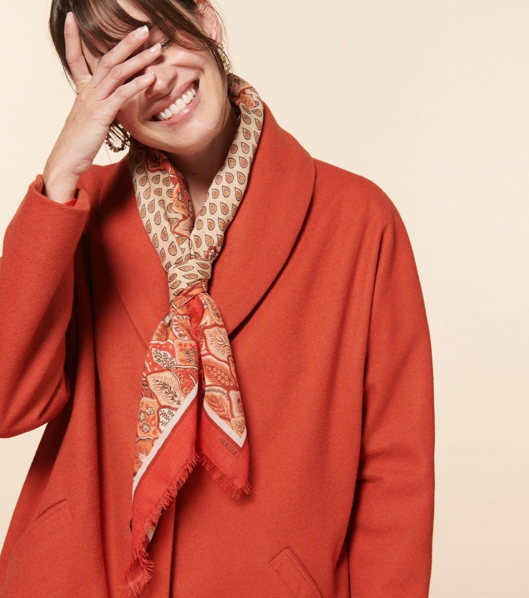 Souleiado Men’s Ecru Orange Paradiso Wool And Silk Square | Écru Orange