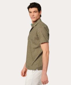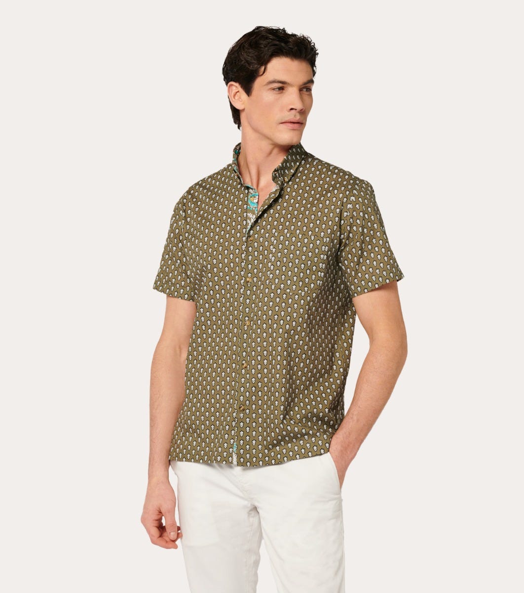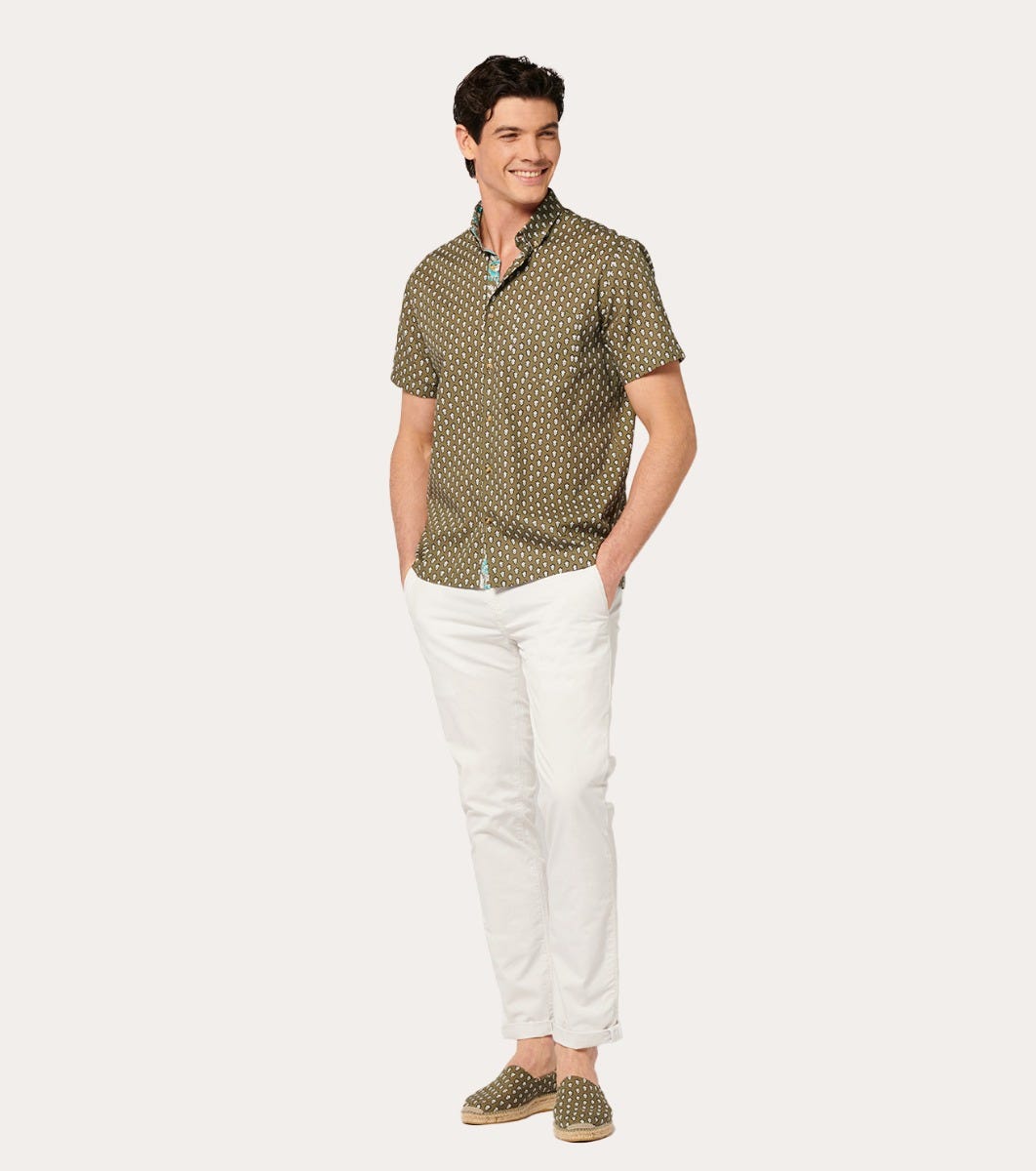 - Le Petit artichaut khaki turquoise frieze in contrast under collar, inside bottom sleeves and inside collar stand