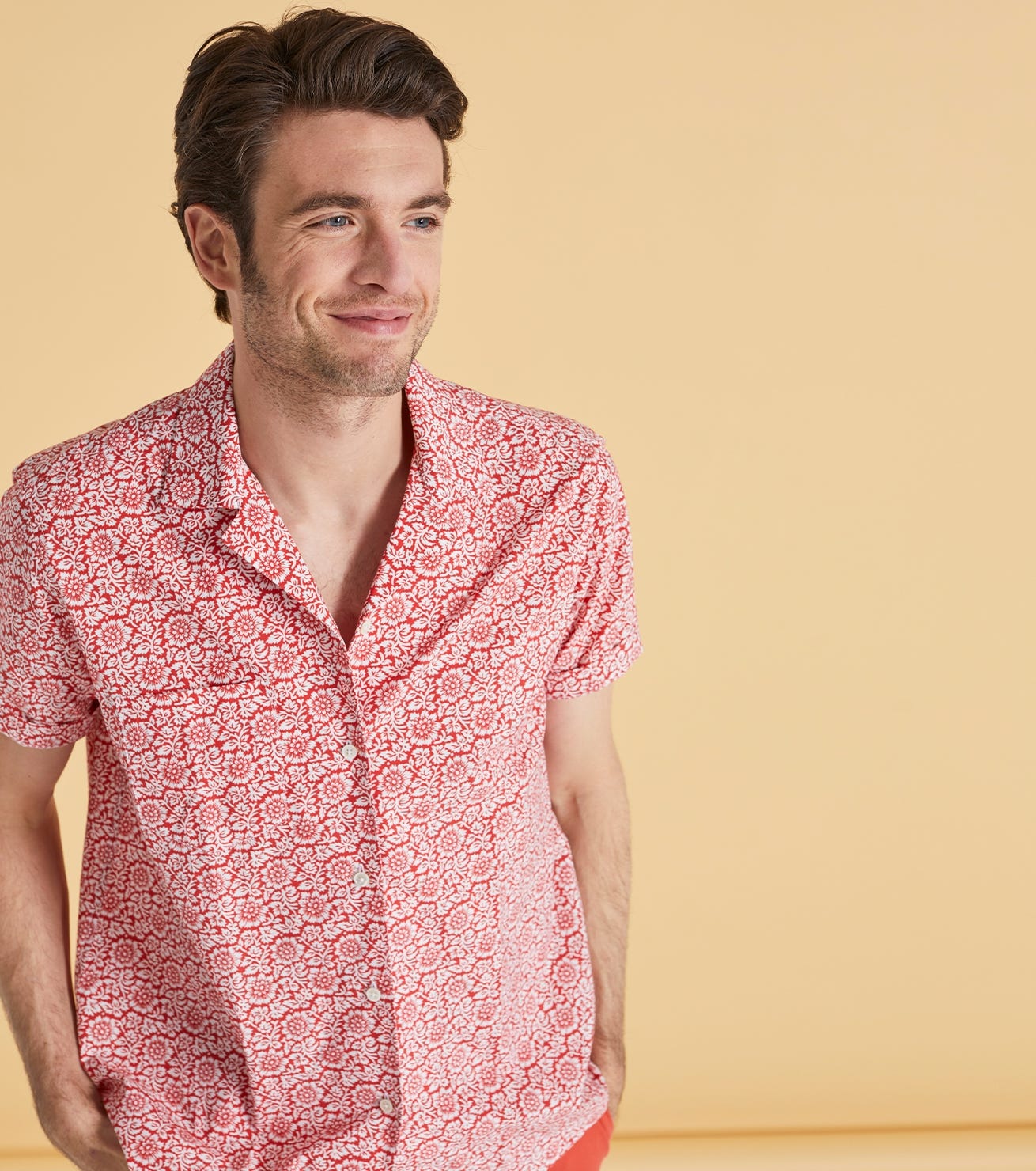 - Straight shirt with patch pocket on the heart side.