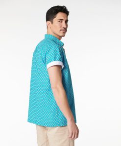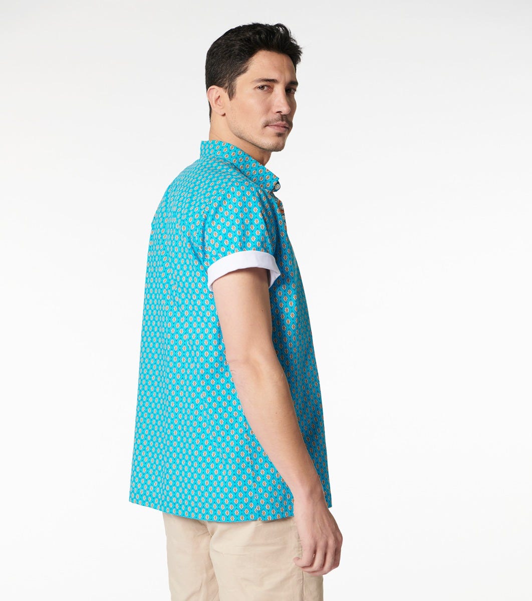- Le Petit Artichaud turquoise frieze in opposition under the throat and inside the collar.