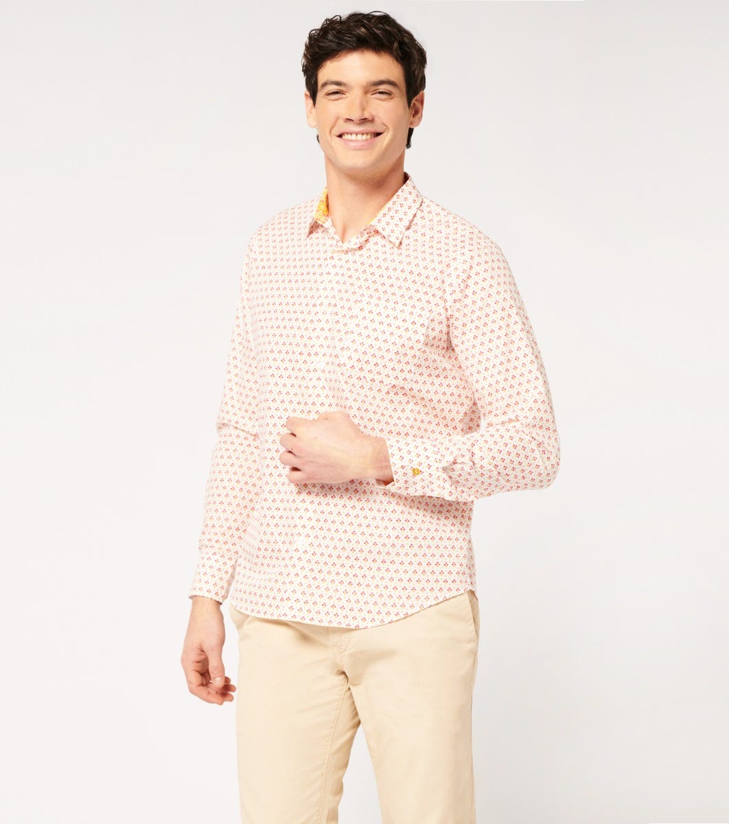 - Sénanque” printed frieze detail, contrasting inside collar stand and inside cuff