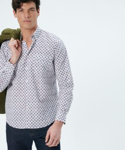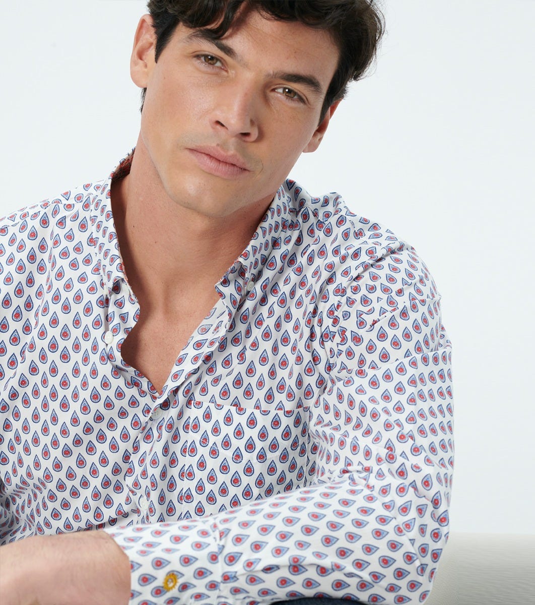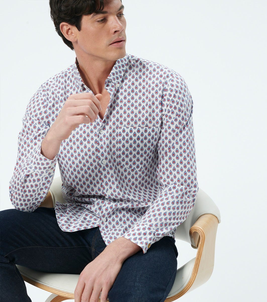 - White Persepolis multico motif on contrasting inside collar stand and inside cuff