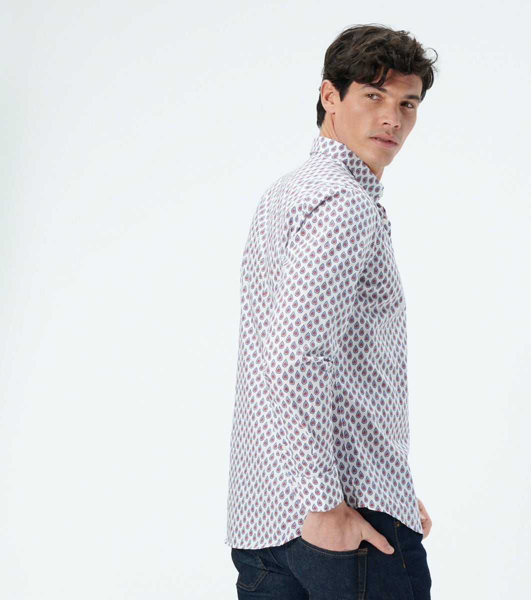 - Slim-fitted shirt with 2 back darts