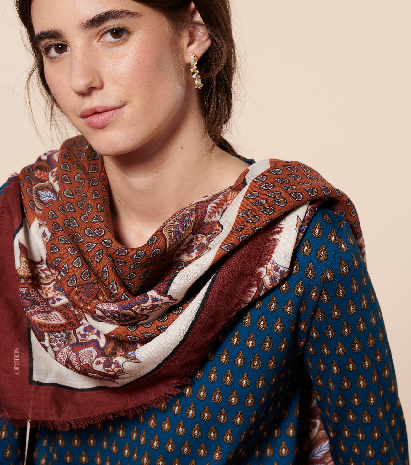Souleiado Men’s Wool And Silk Shawl Paradiso Chestnut Color | Châtaigne