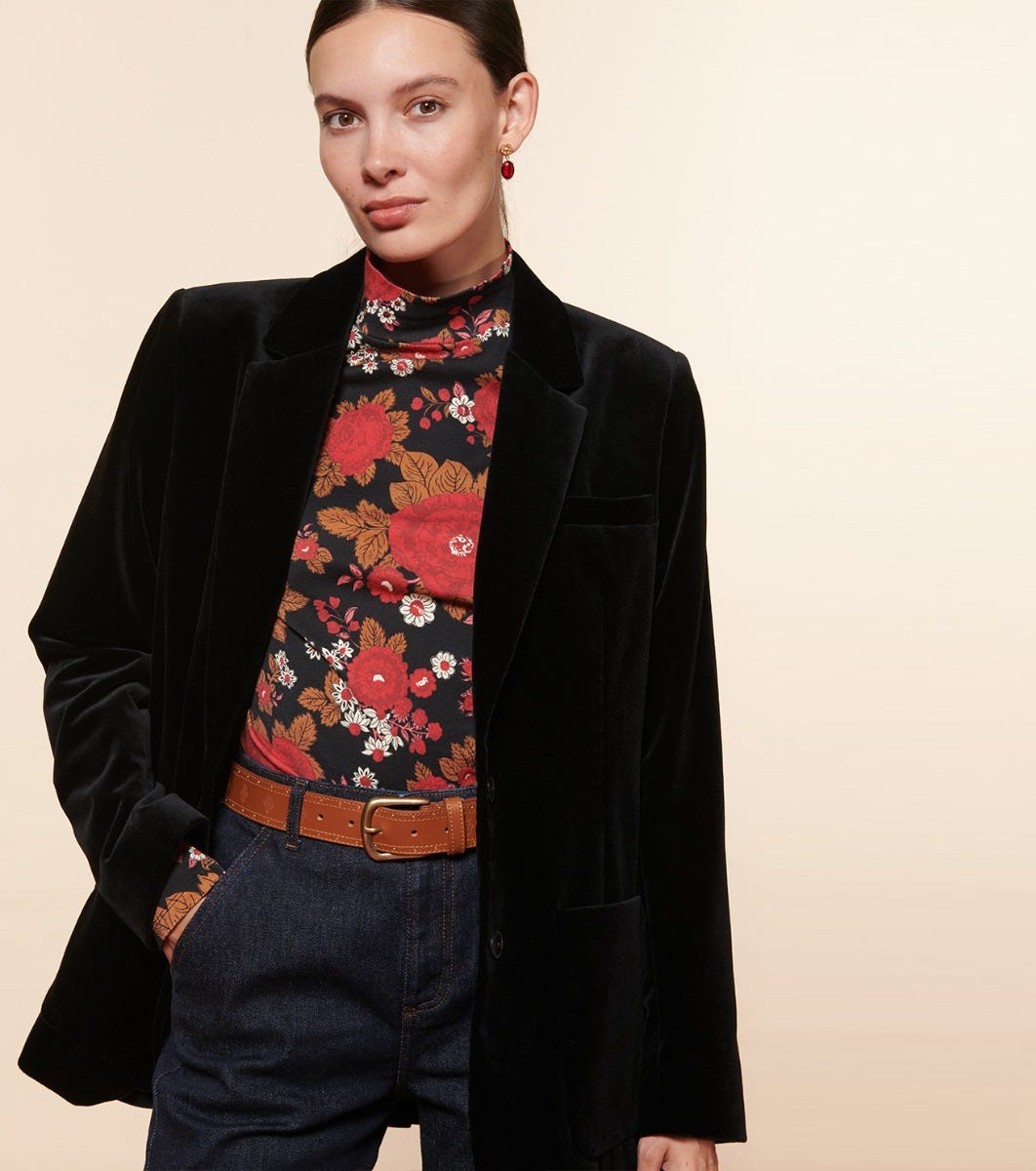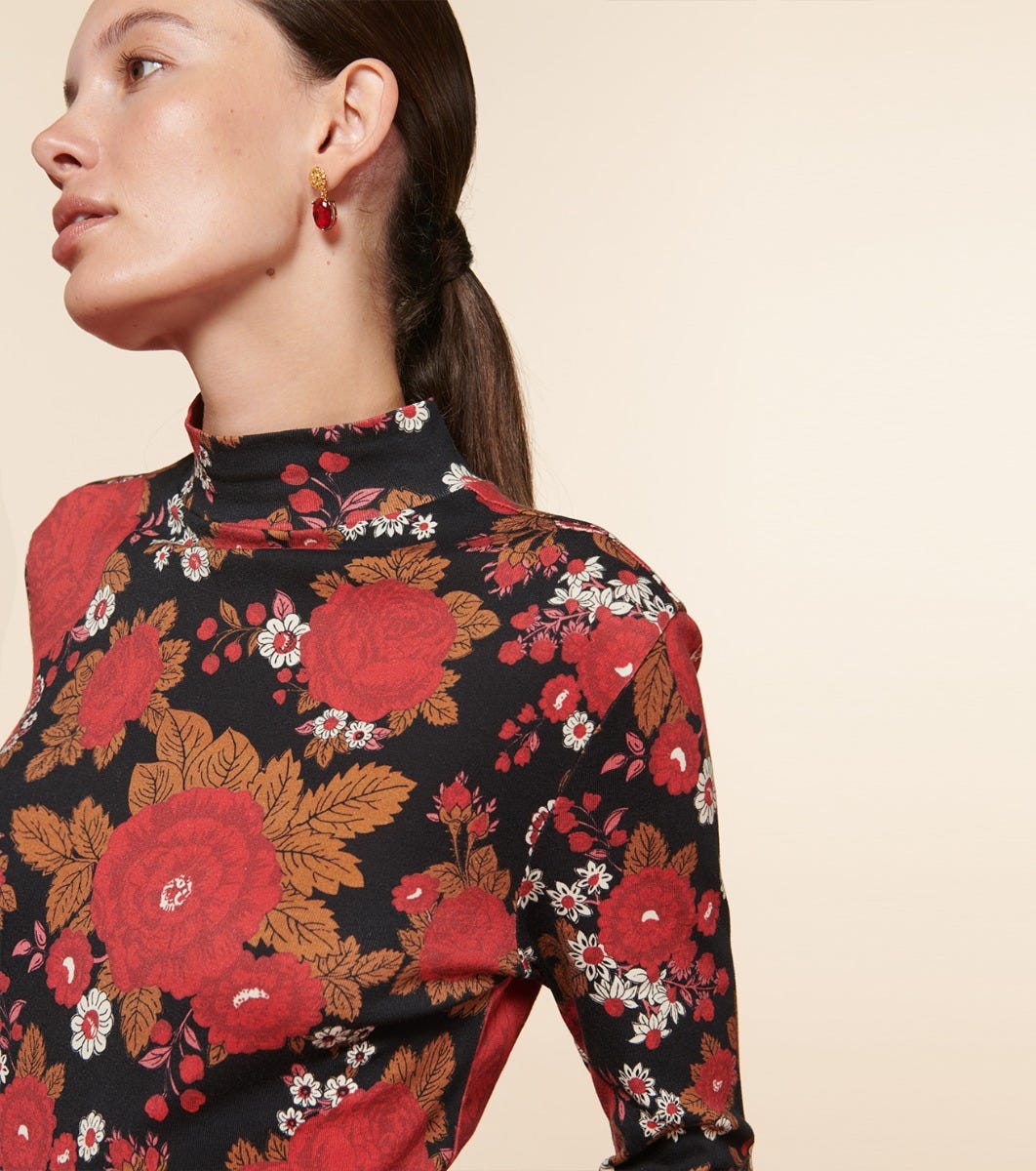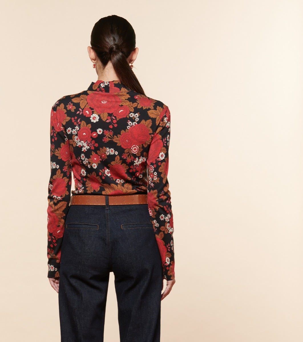 - In cotton jersey with fine ribbing, printed with our “Roulotte” pattern black red color