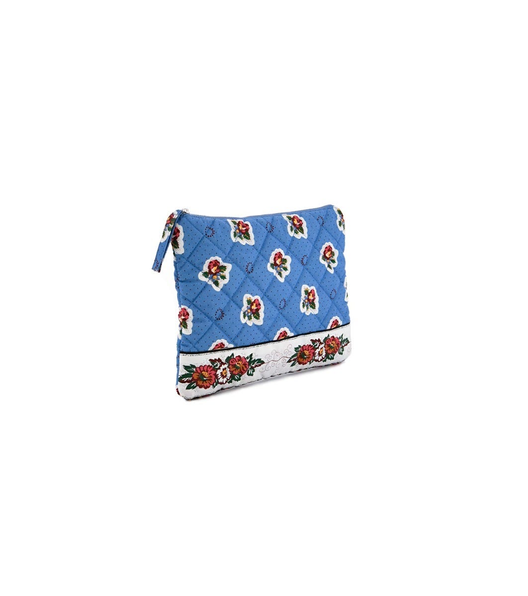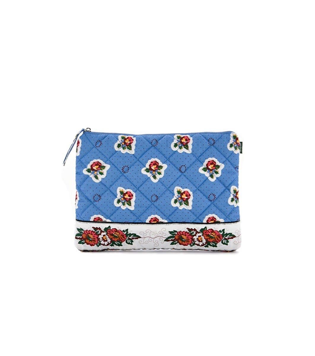 - Rectangular quilted clutch bag with a blue Spring print.