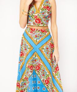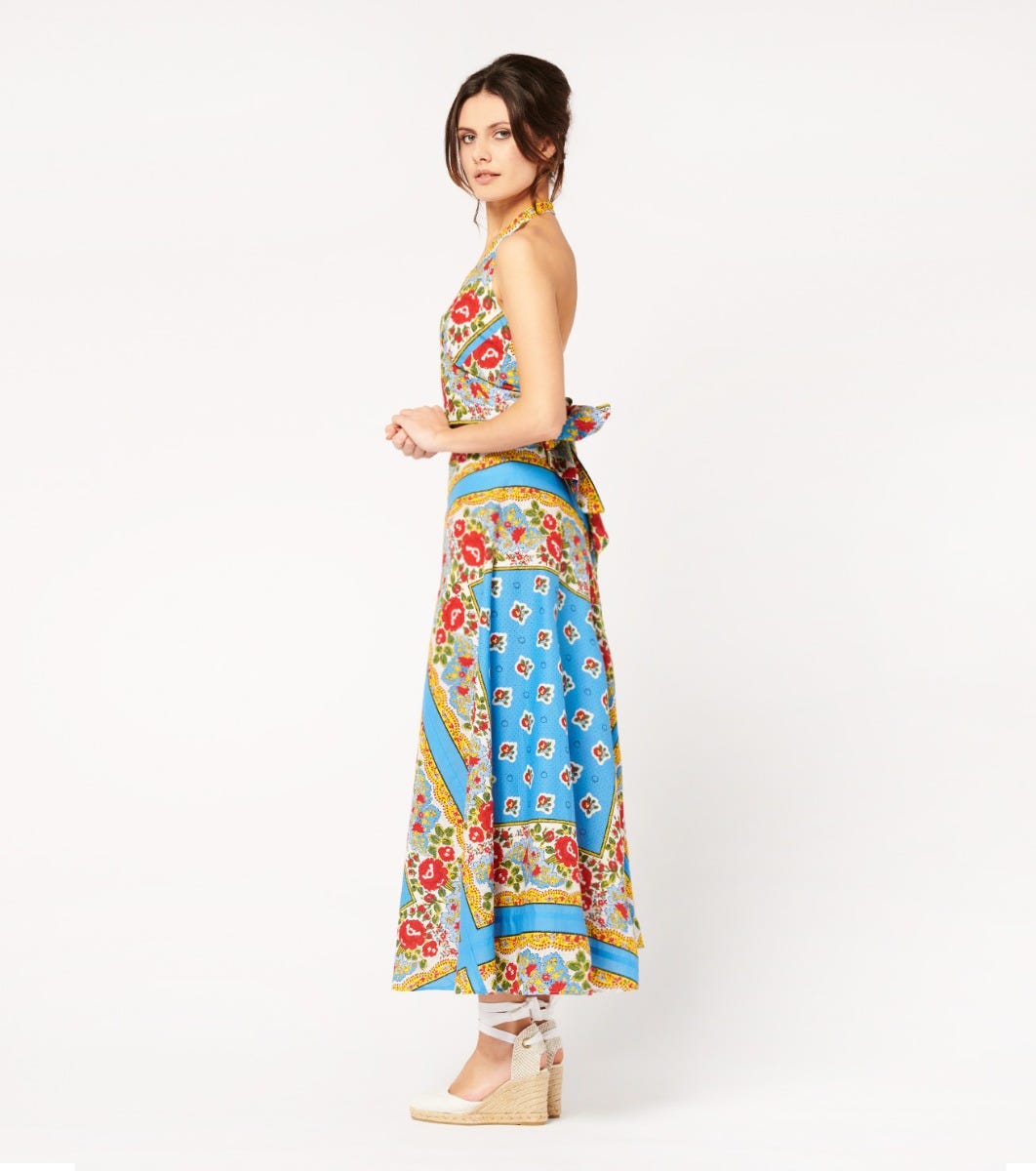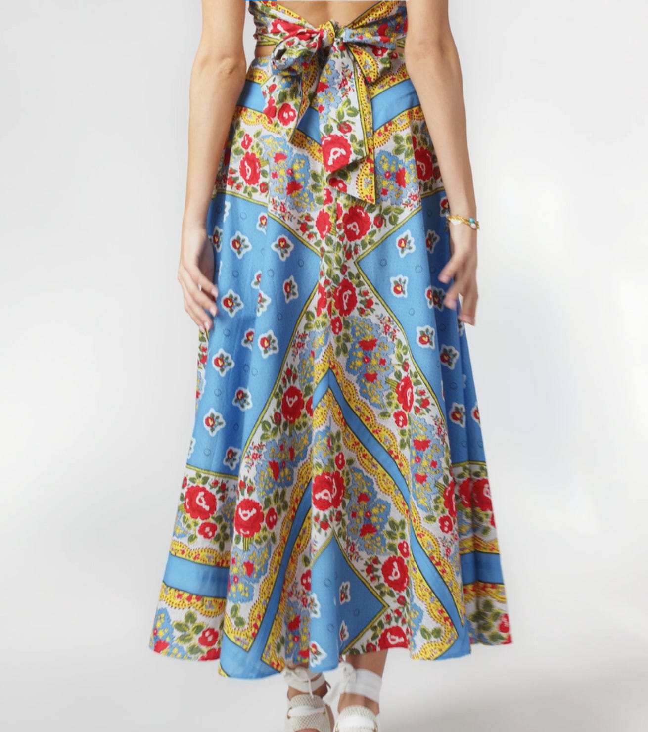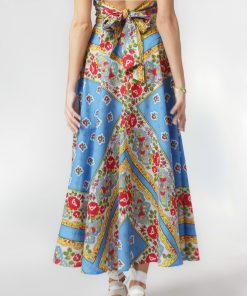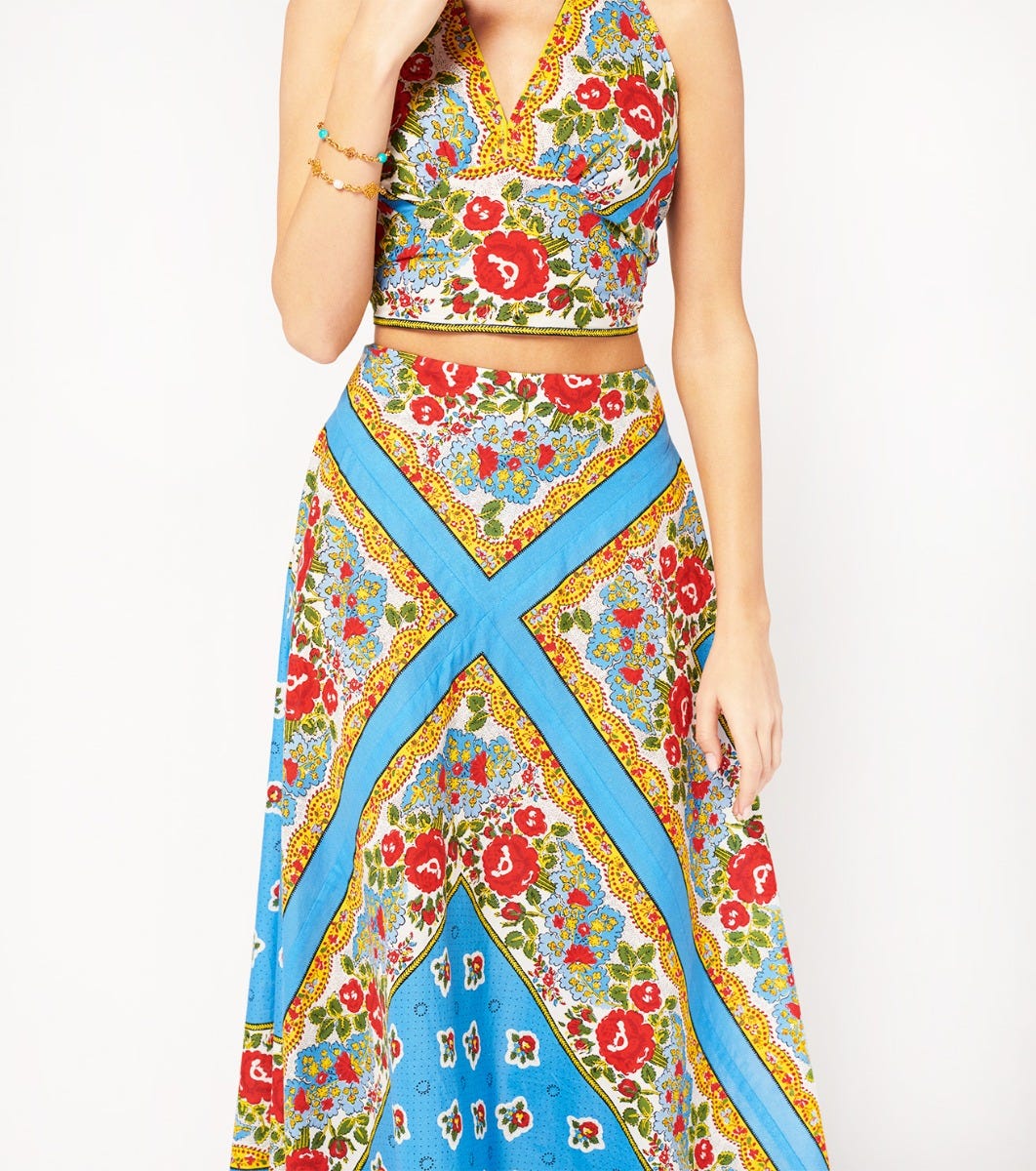 - Inspirée des archives Souleiado, cette jupe en batiste de coton imprimé allie tradition et modernité, avec une coupe ajustée et son bas légèrement évasé. Sa spécificité est faite par l’assemblage de foulards qui viennent donner sa forme à la jupe.
