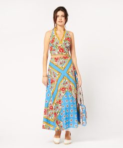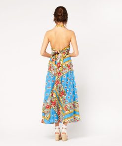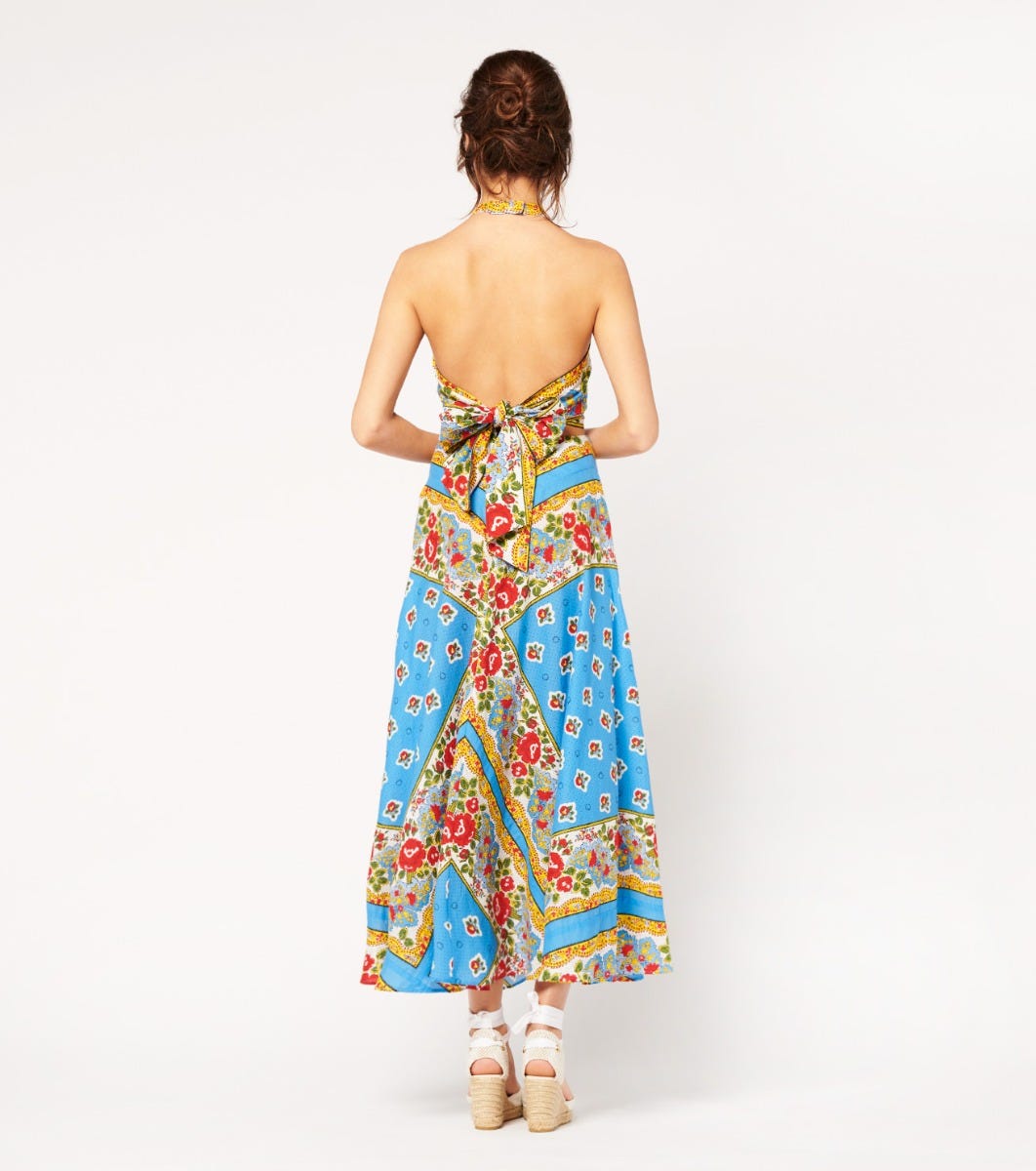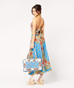 - En batiste de coton imprimé avec notre motif “Foulard Grosse rose” coloris bleu