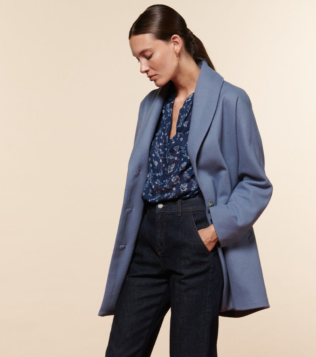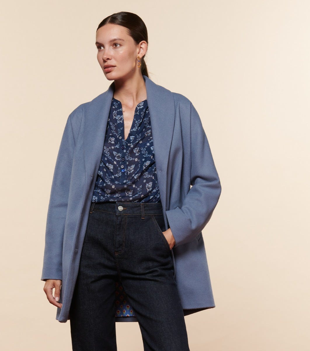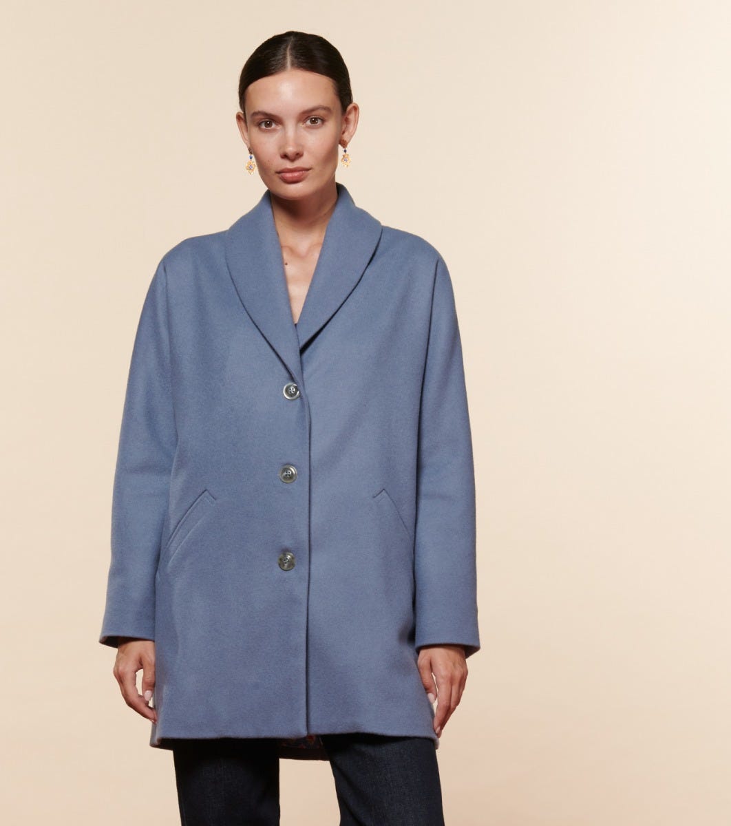 - Loose-fitting mid-length coat