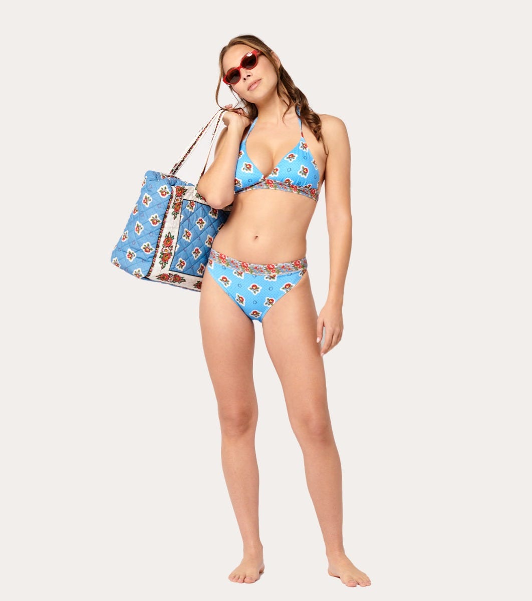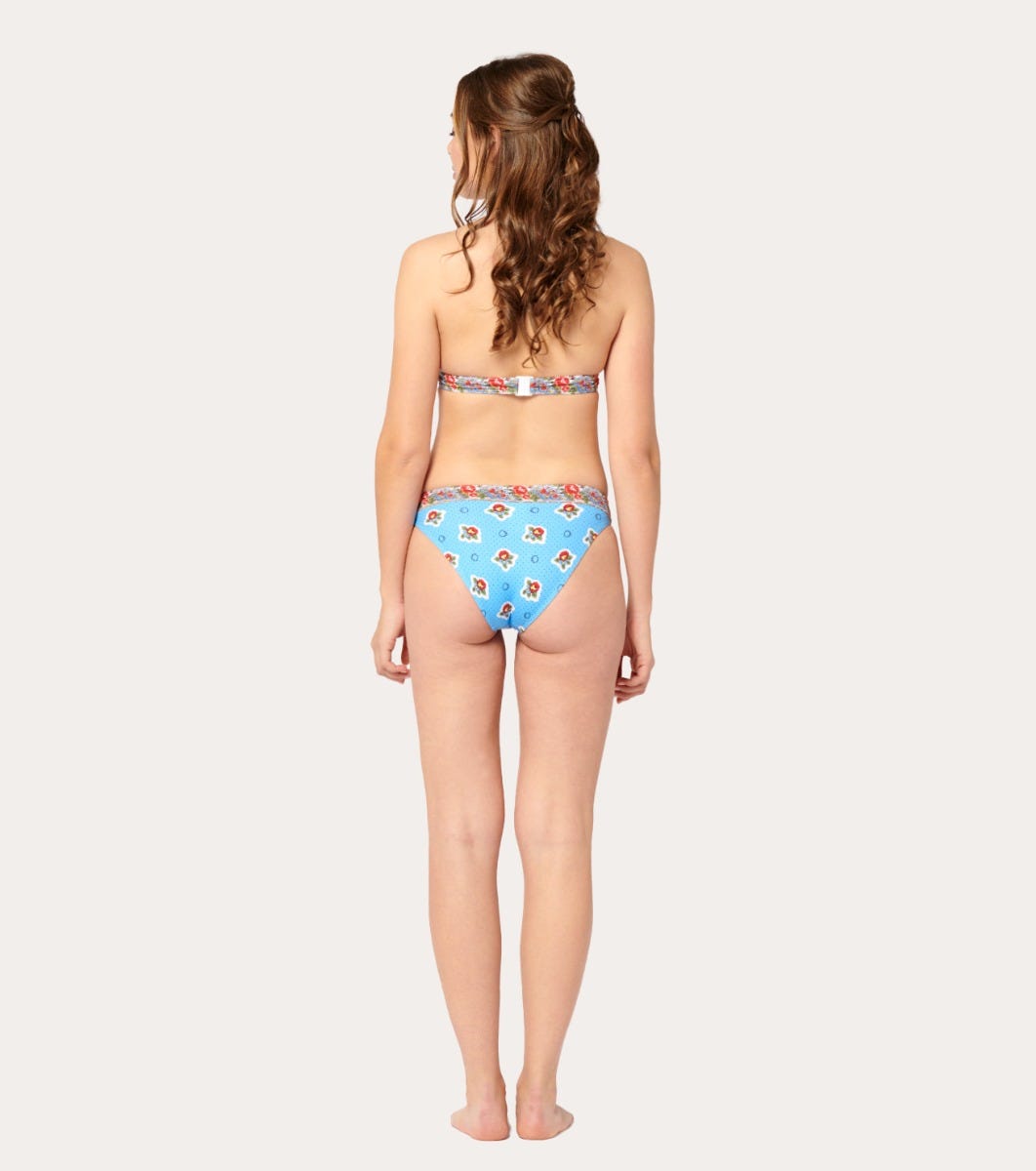 - In a polyamide-elastane blend printed with our iconic “Le Printemps” motif in blue
