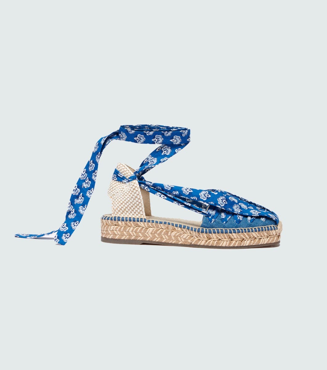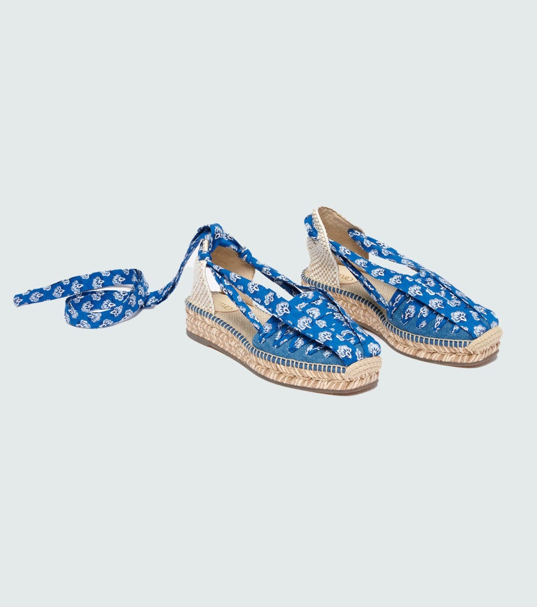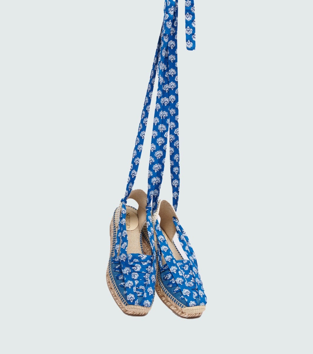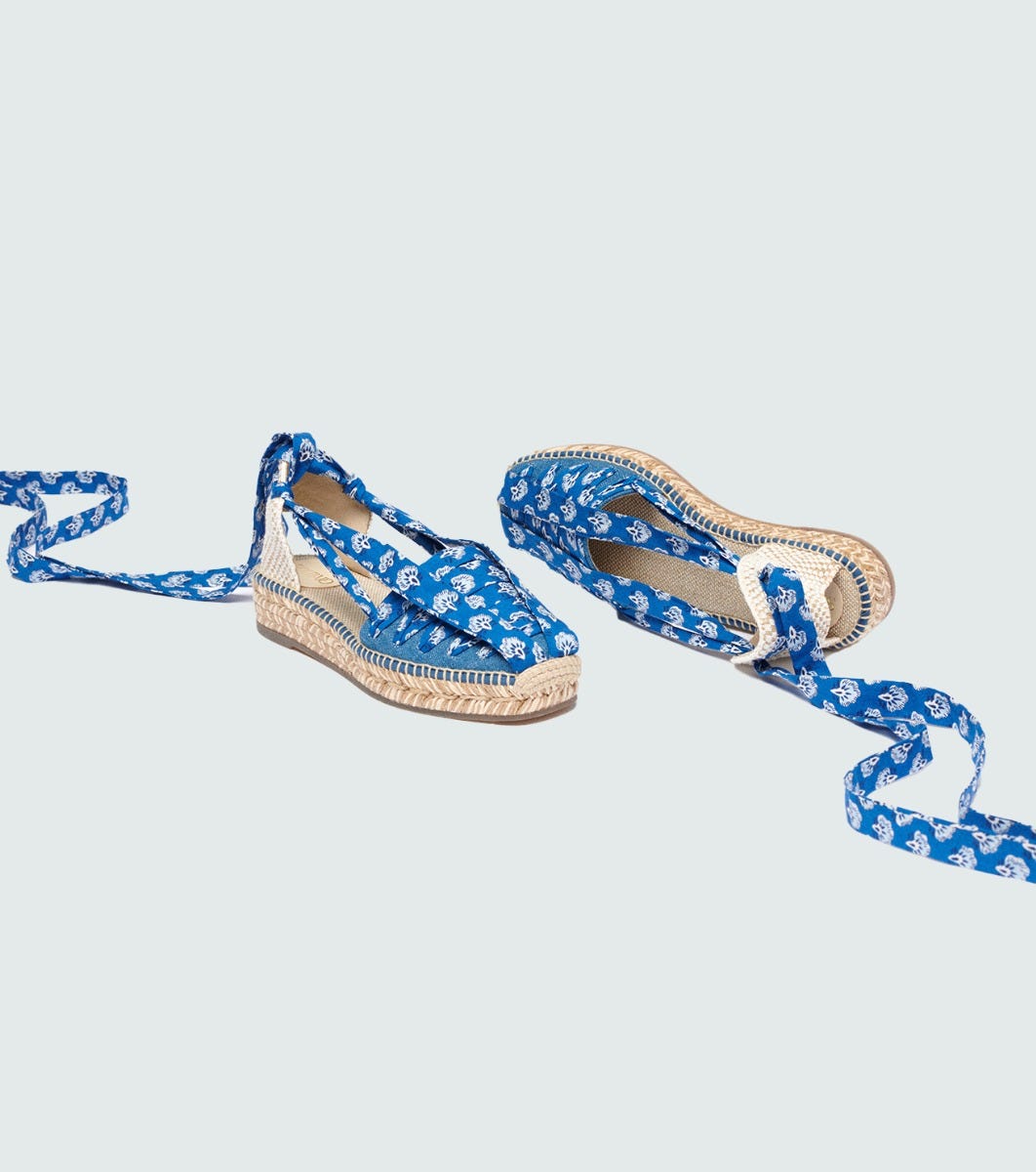 - Vanina, our Catalan-style platform espadrille, comes this season in denim embellished with a thin cotton ribbon to tie around the ankle.