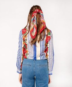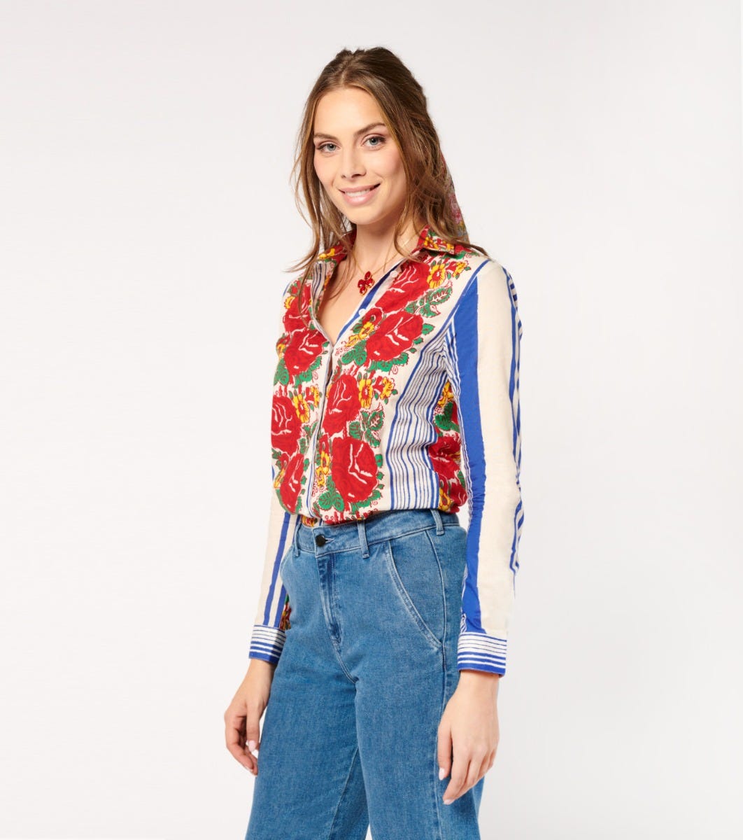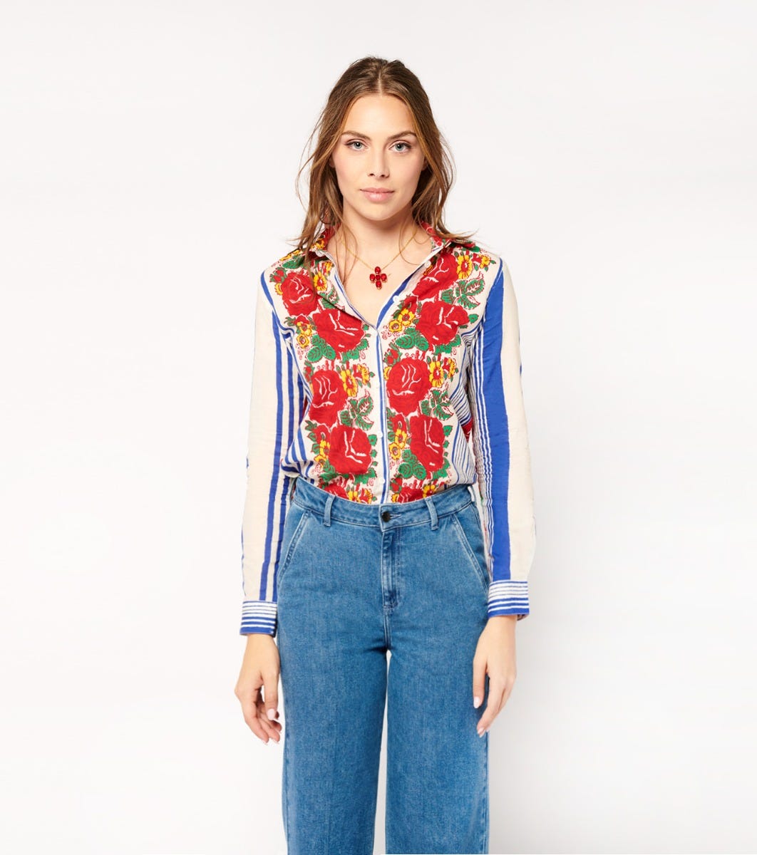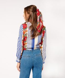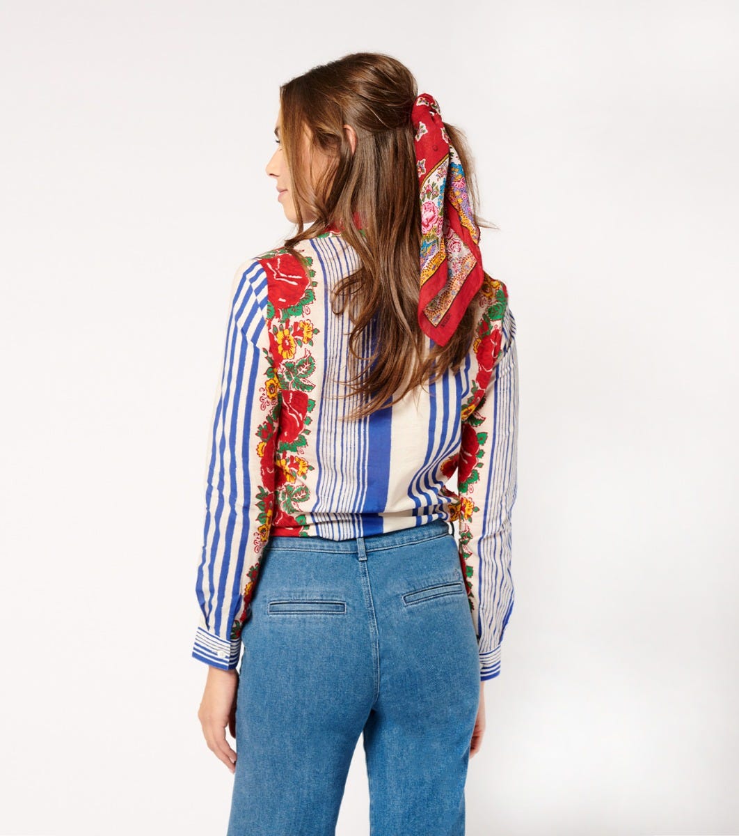 - In 100% cotton poplin, printed with our “chantal” motif in ecru blue.