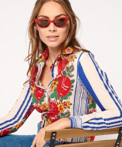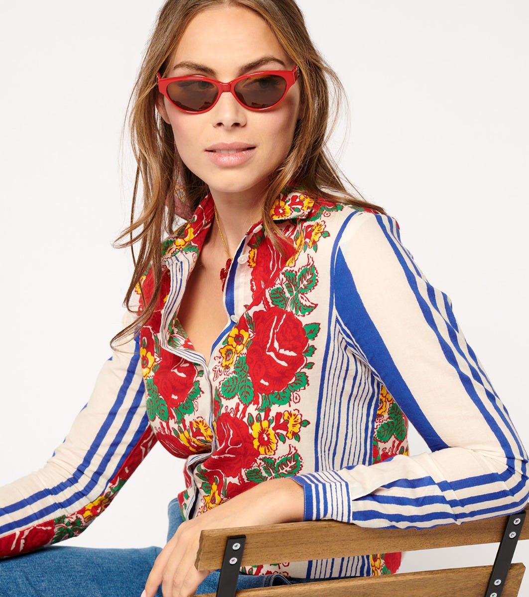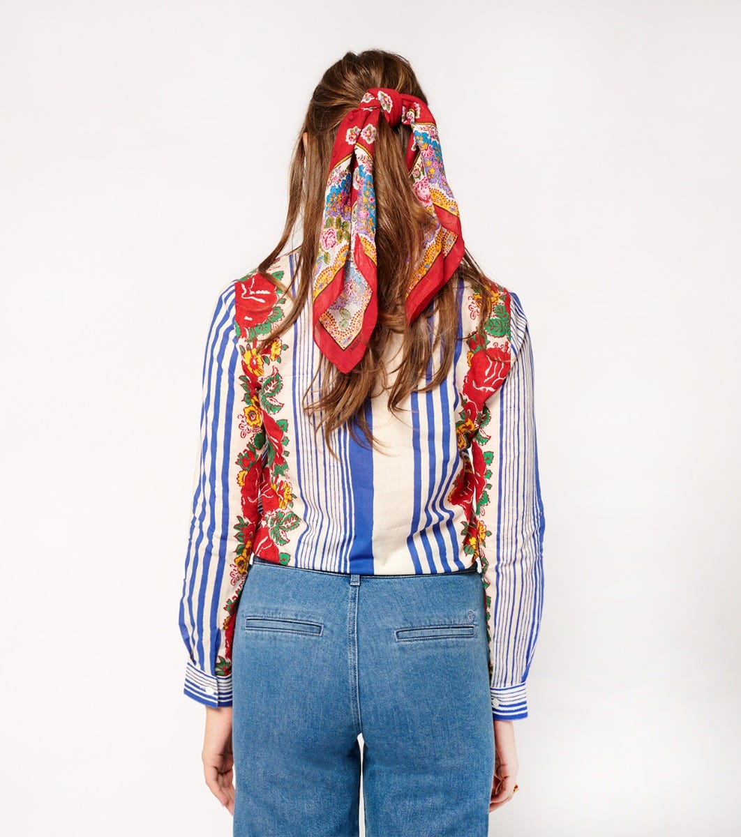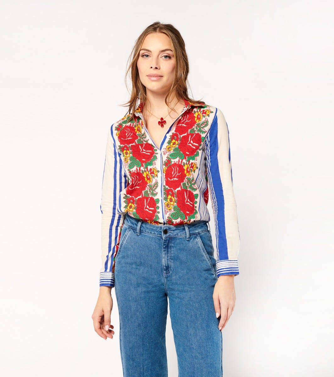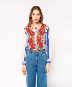 - In 100% cotton poplin, printed with our “chantal” motif in ecru blue.
