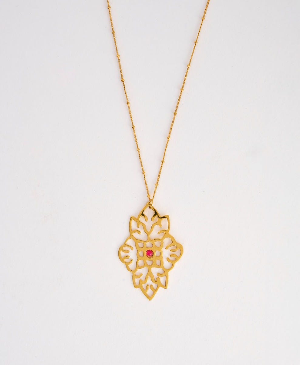 - Our grande merveilleuse openwork pendant necklace is made from fine gold-plated brass.