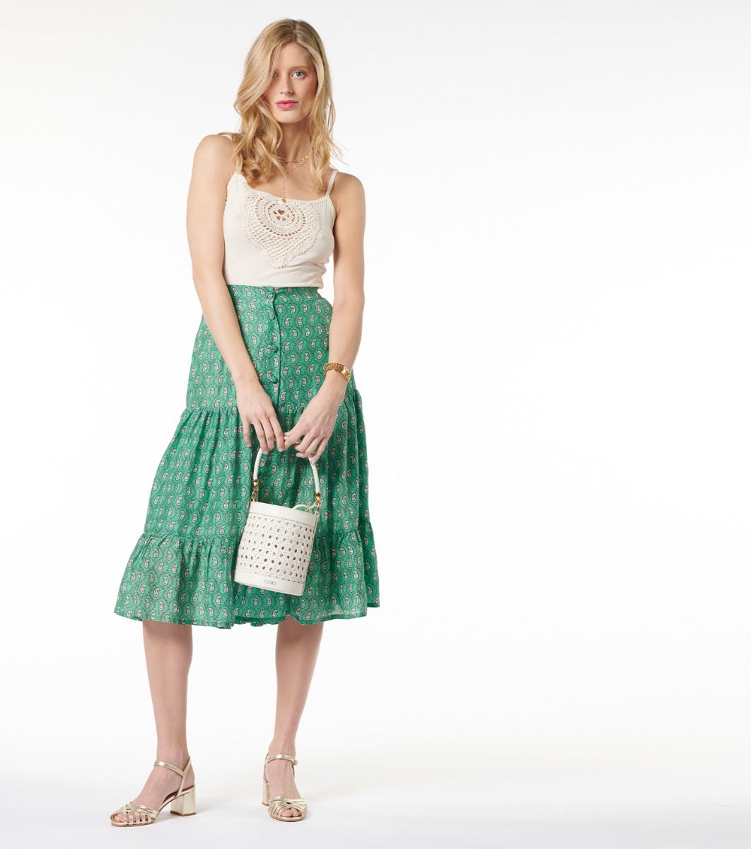 - Closing in the middle front with fabric covered buttons Lining in ecru cotton veil