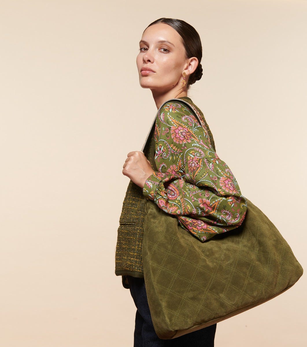 - Inlaid frieze with “Grande frise persepolis kaki fuchsia” print on bottom sleeves