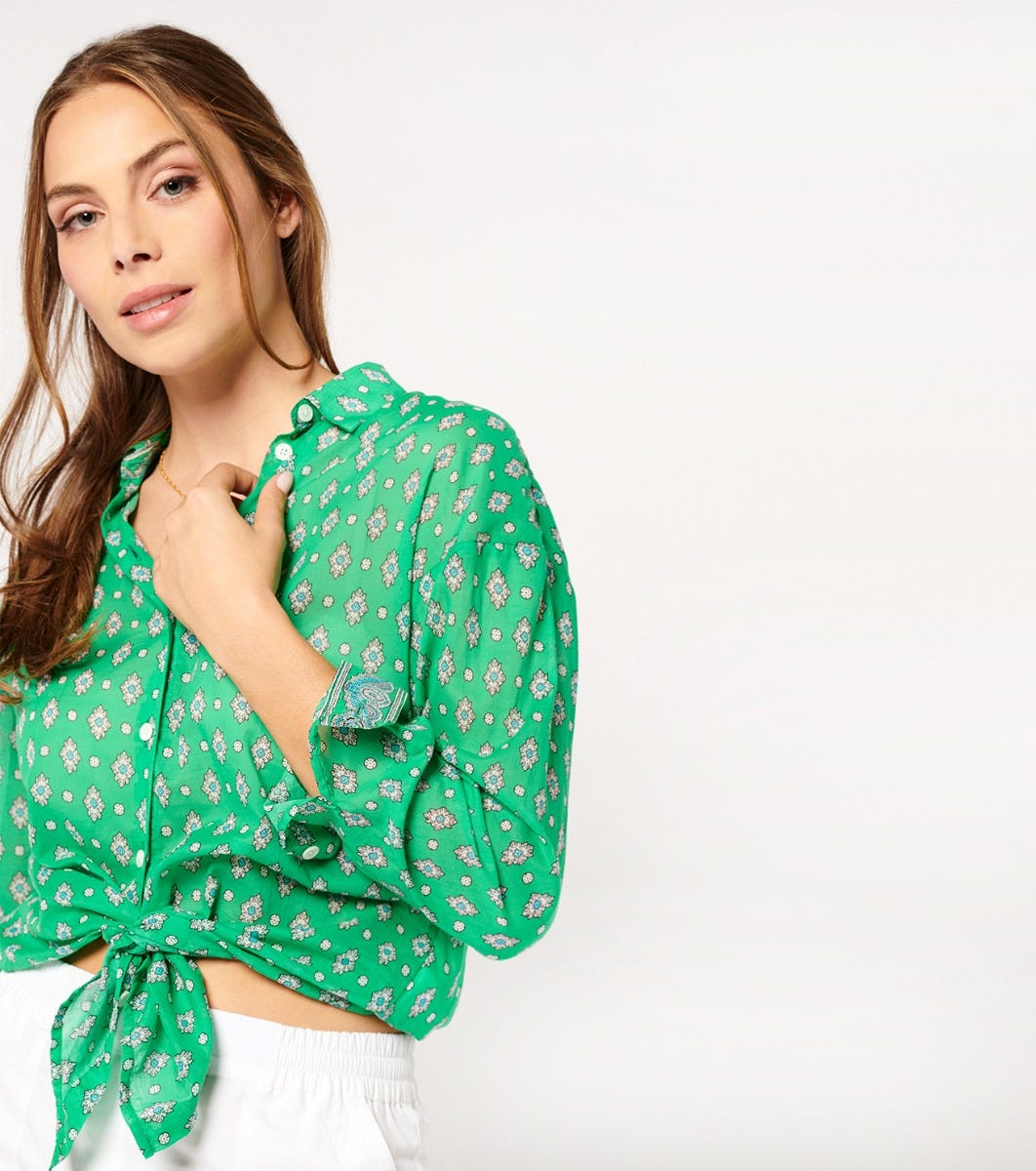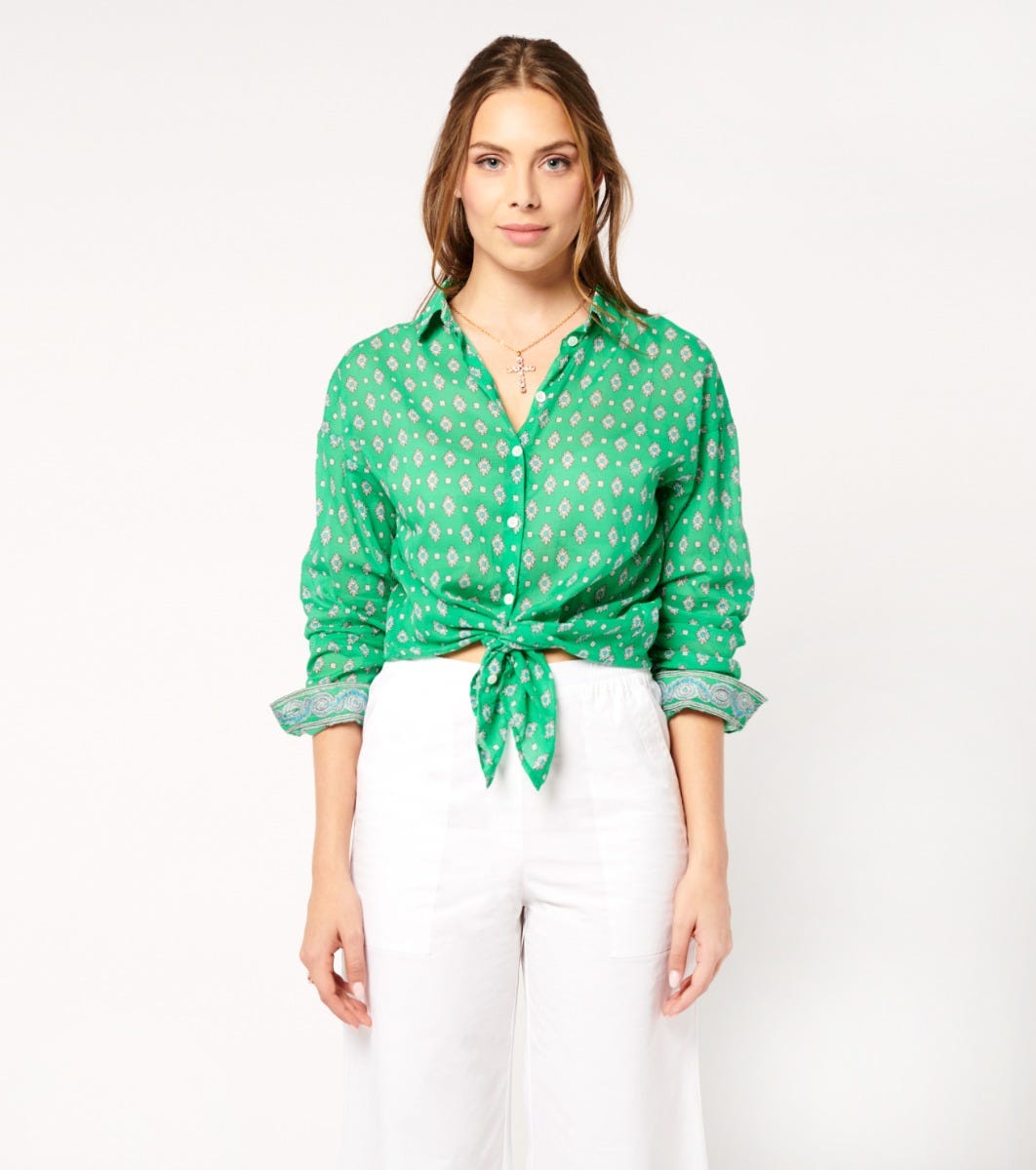 - In cotton voile printed with our iconic “”La Merveille“” pattern in aqua mint.