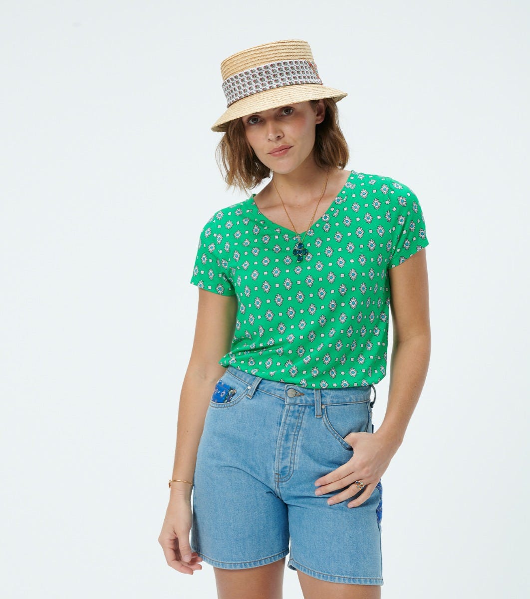 Souleiado Women’s Mint & Aqua Polly “merveille” T-shirt | Menthe & Aqua