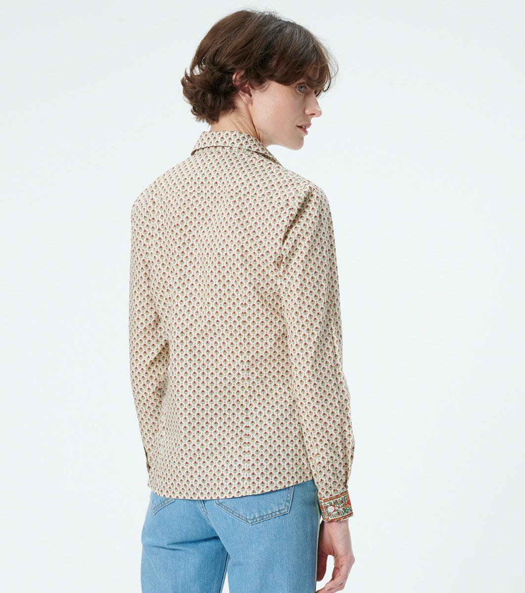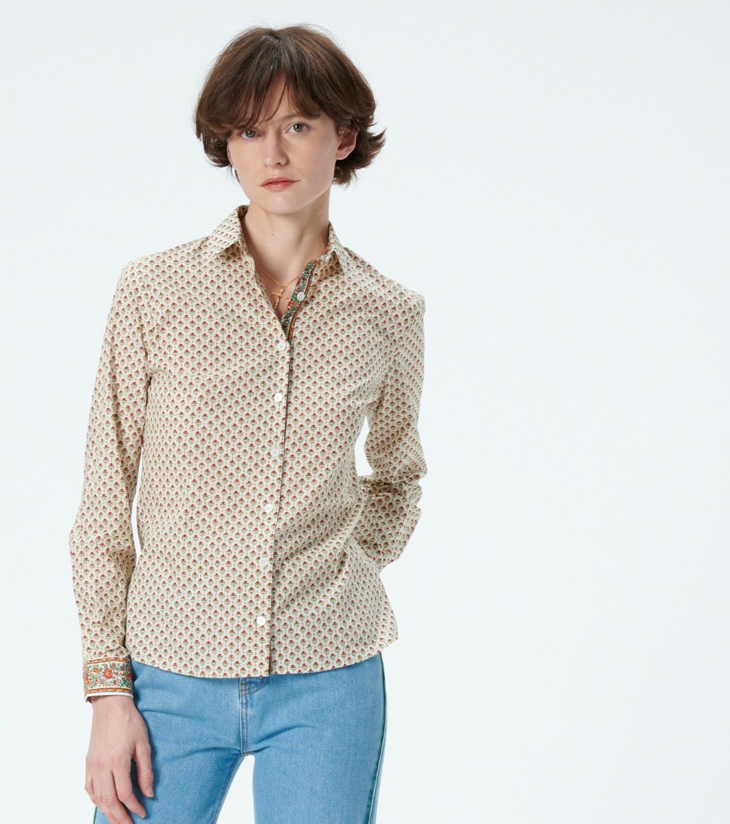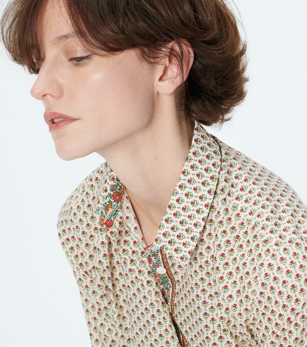 - Long sleeves tightened by a closed cuff with engraved mother-of-pearl button
