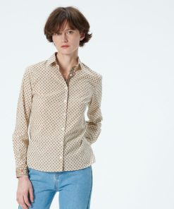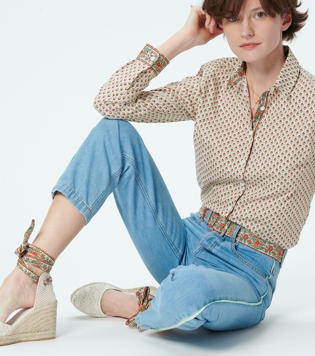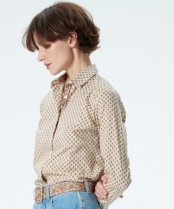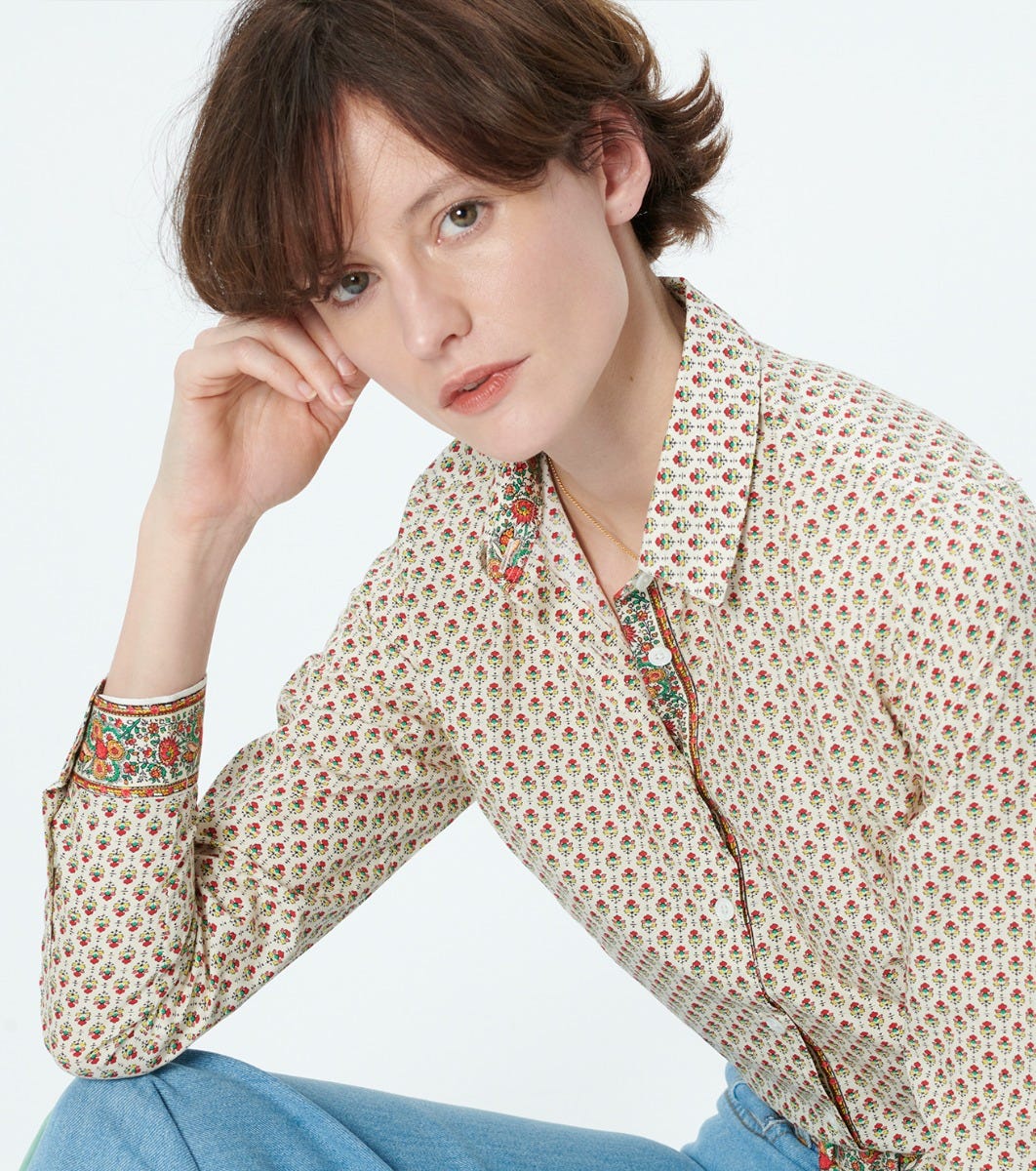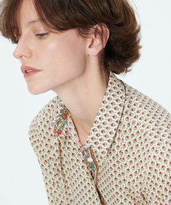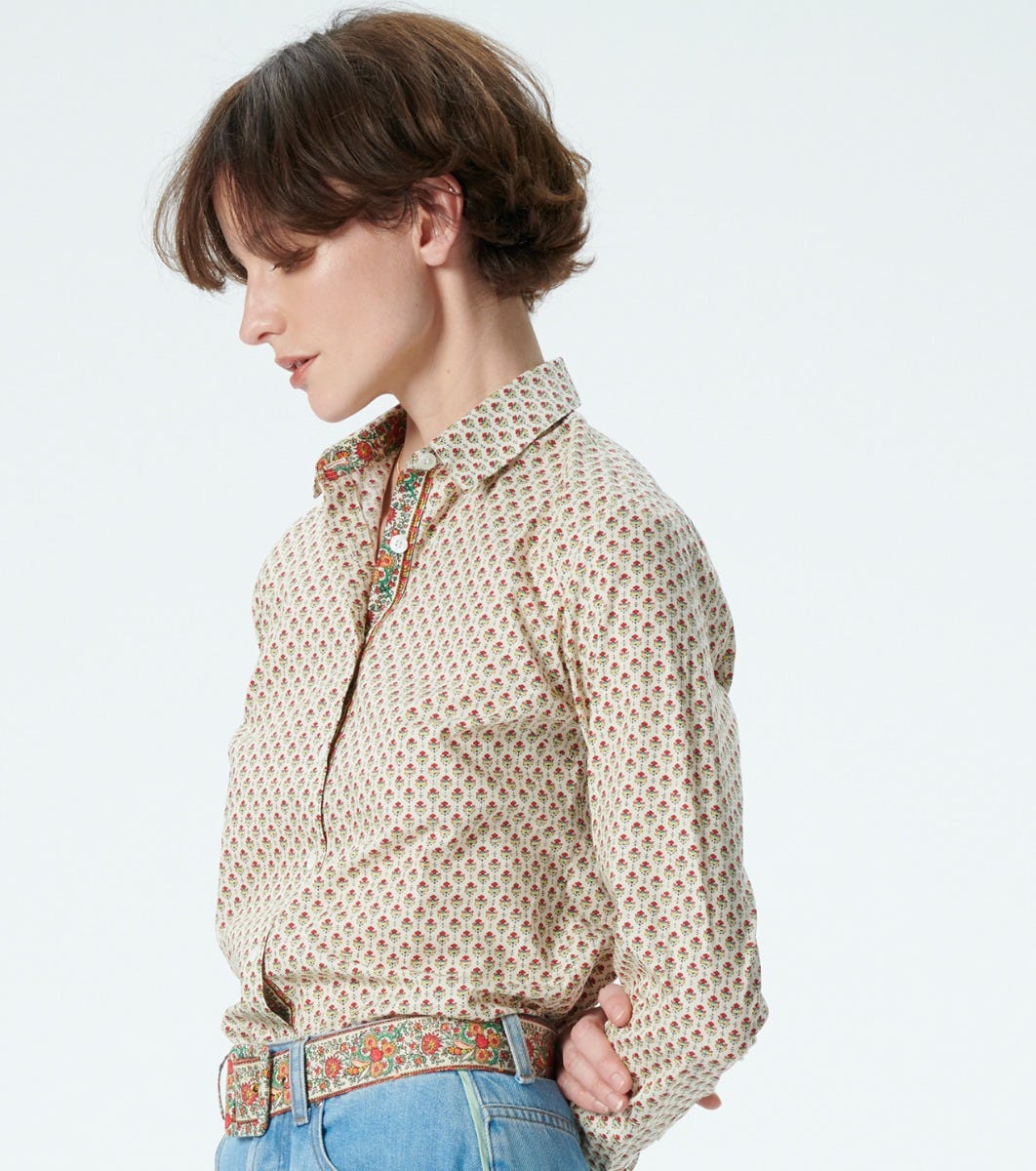 - Long sleeves tightened by a closed cuff with engraved mother-of-pearl button