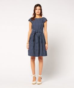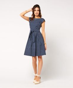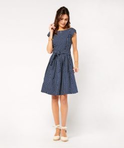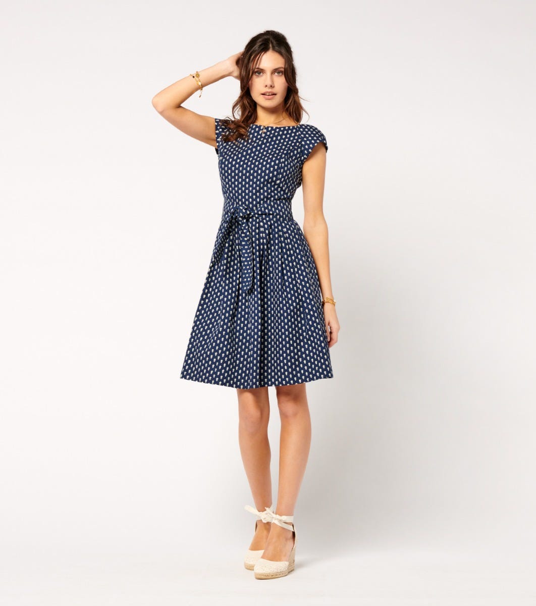 - Embrace retro style with this 50s-inspired cotton poplin Bardot dress. Its fitted top and full skirt create a feminine, vintage silhouette.