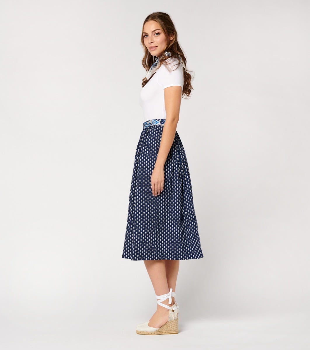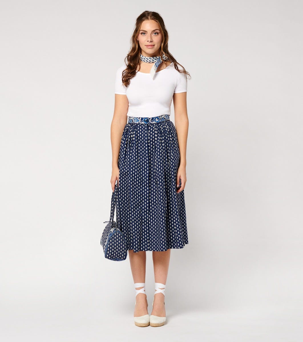 - Fanfonne, our flared midi petticoat that combines tardition and modernity. With its timeless couplet and hidden side pockets, it’s perfect for your everyday outfits. Wear with white sneakers for a casual edge, or espadrilles for a springtime look, depending on your mood!