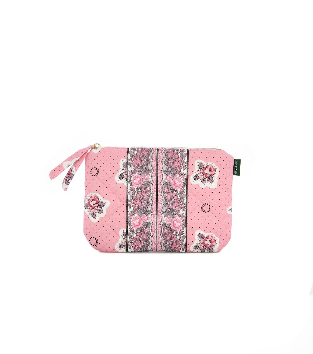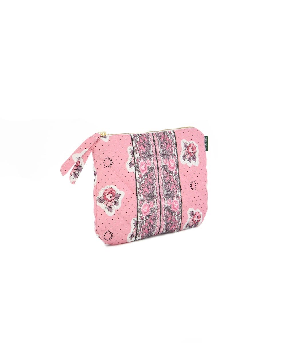 - Quilted cotton clutch bag printed with pink Spring rhombus.