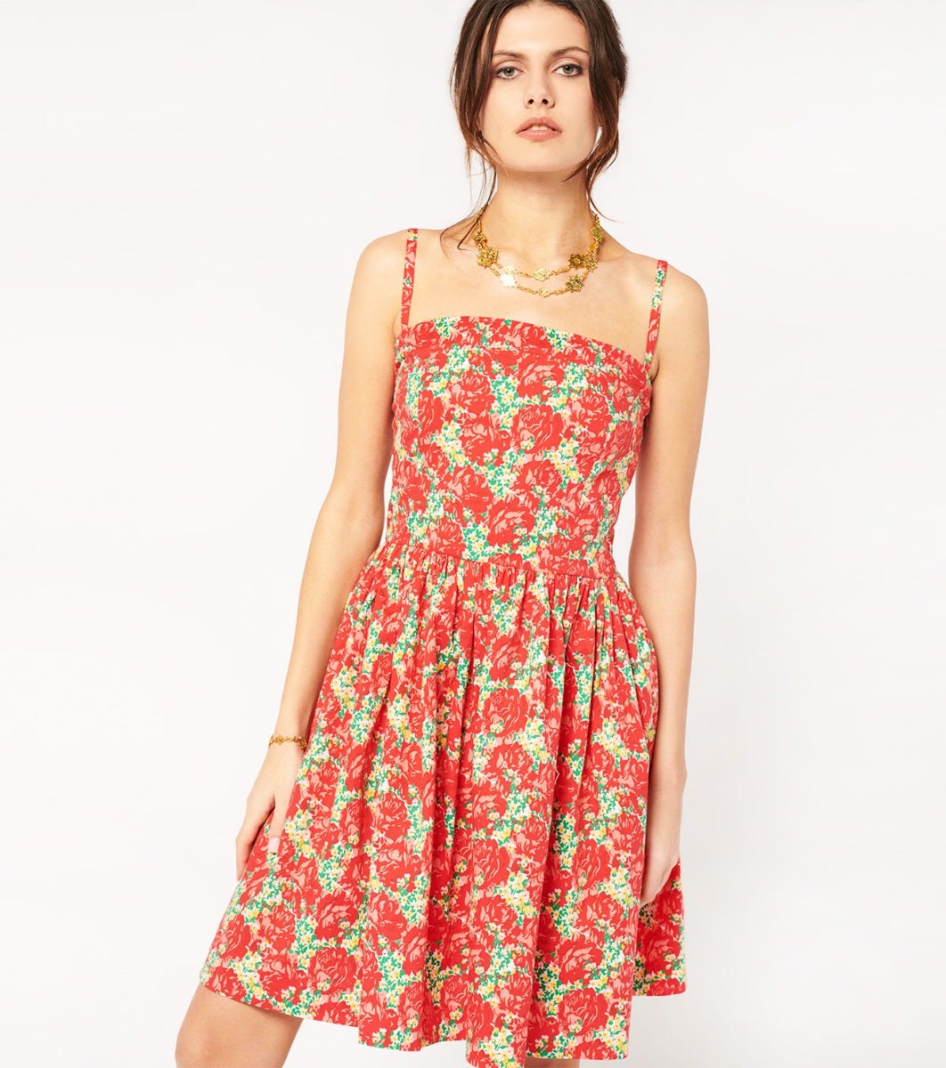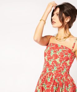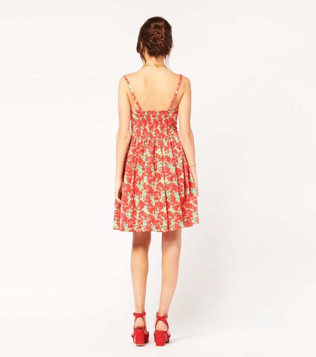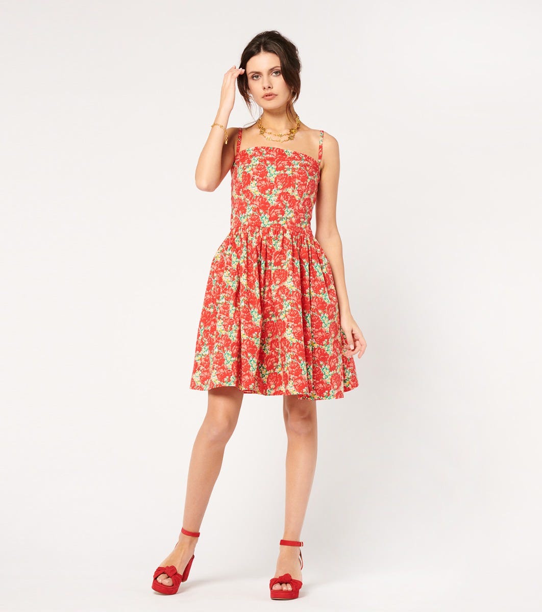- In cotton-elastane poplin with our “Bouquet de roses” motif in red