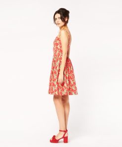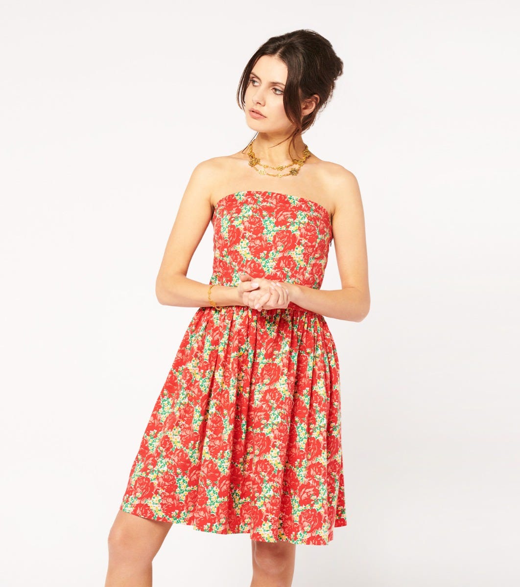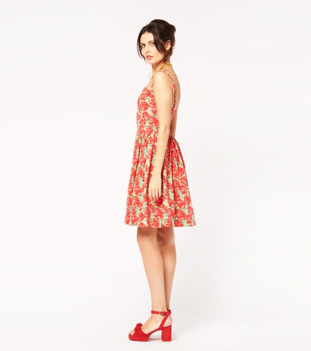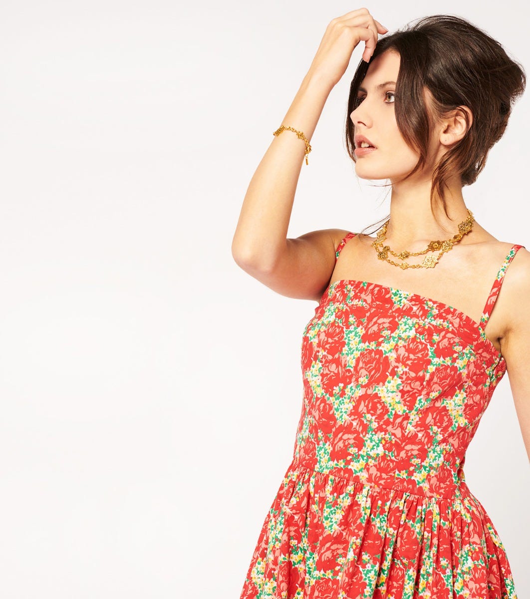 - In cotton-elastane poplin with our “Bouquet de roses” motif in red