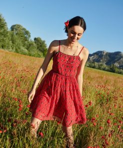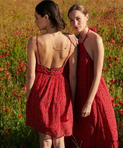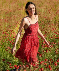 - Knee length dress with thin adjustable straps