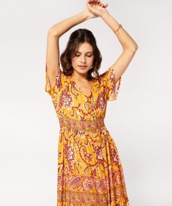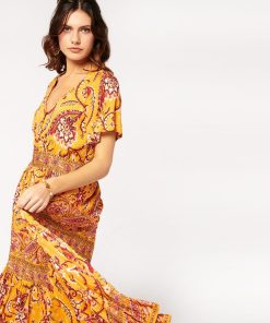 - Buttoned placket in the middle front with contrasting under placket printed frieze Little red Narcissus