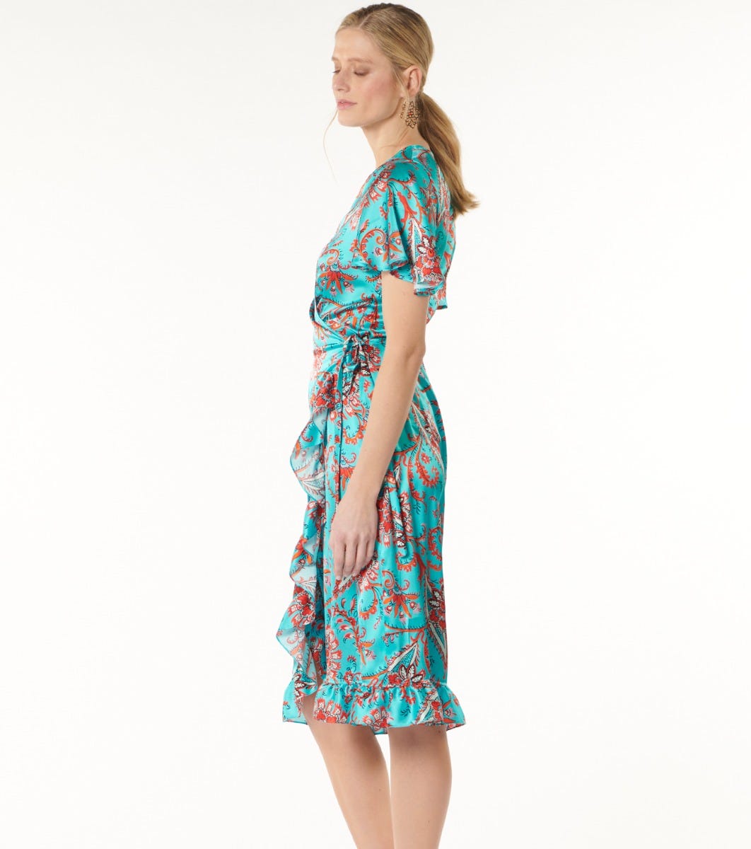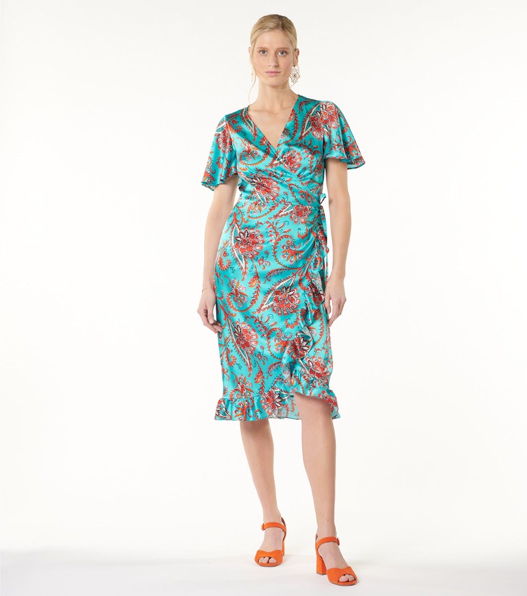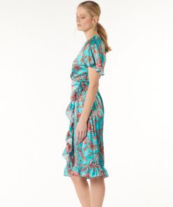 - Heart-shaped opening, decorated with a ruffle from the neckline to the bottom of the skirt