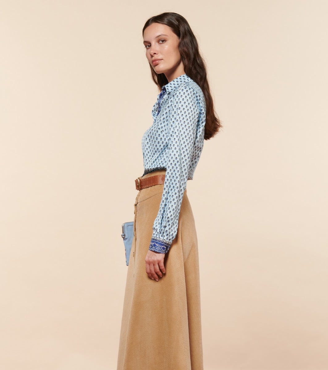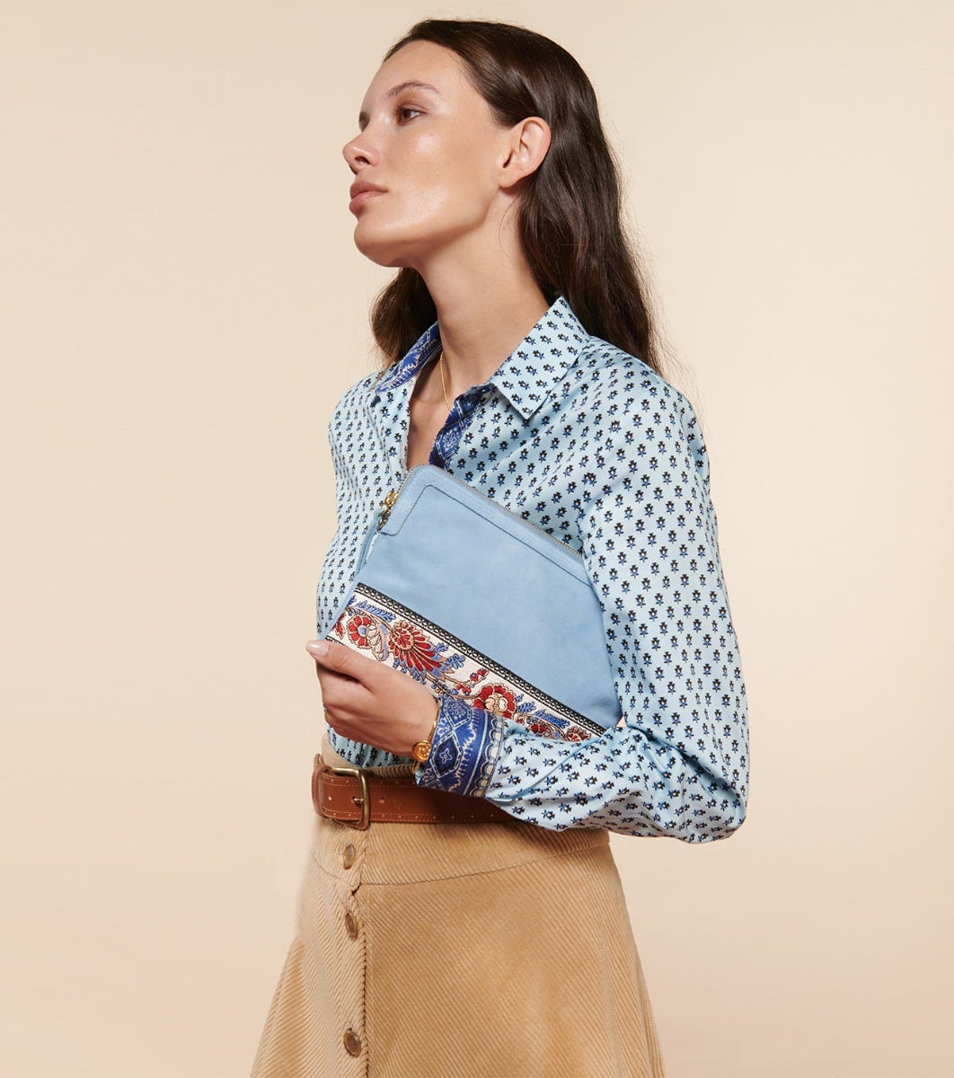 - Fringe detail printed with our sky-beige “Frise Margaux” motif on inner collar, back of throat and outer cuffs