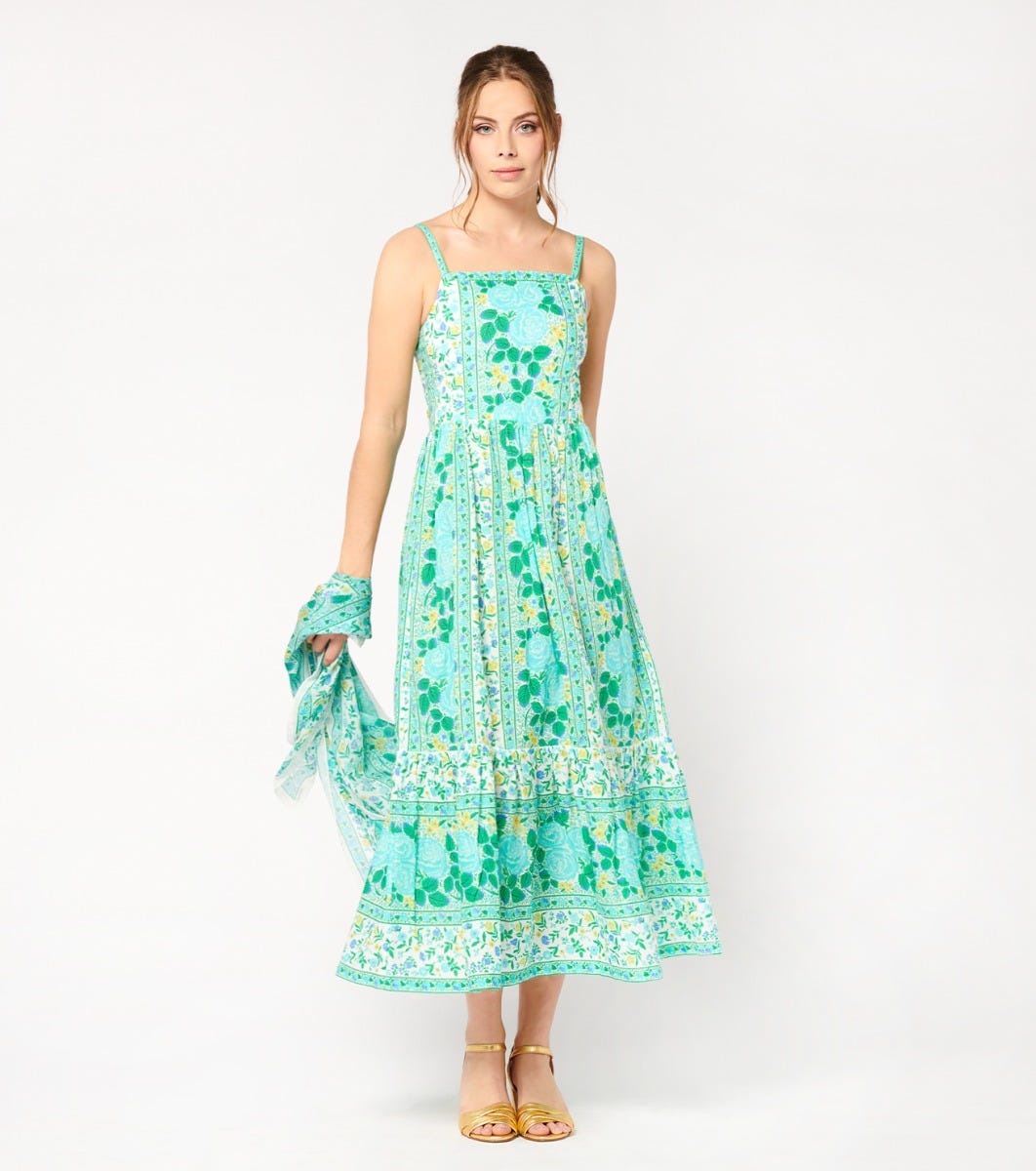 - In cotton batiste printed with our “Dolce vita” motif in mint turquoise