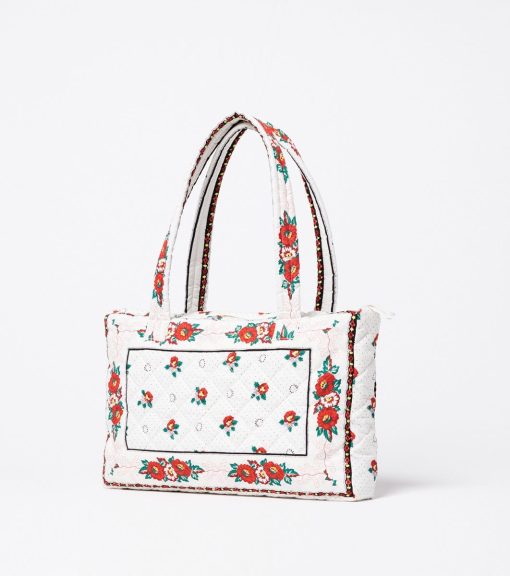 - ADIANA quilted bag in white printed cotton with La Petite Rose braid