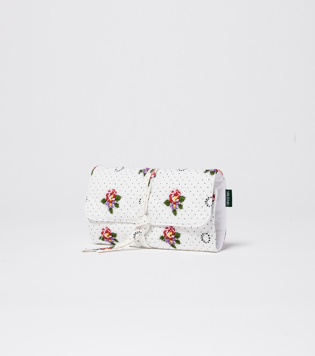- Quilted rhombus jewelry case with “Printemps” print in white